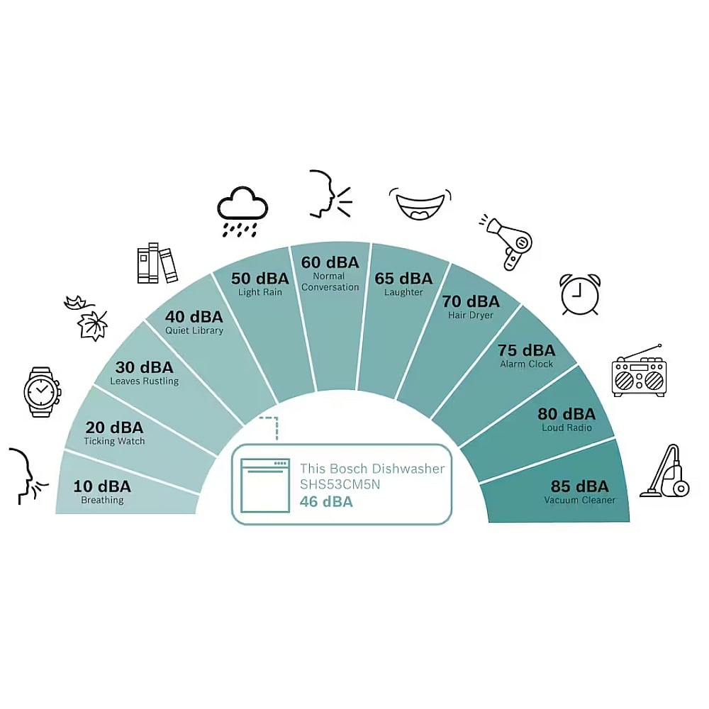- Remarkably Quiet Operation at 46 dBA: creating a dishwasher so quiet, you can't always tell it is running -- this is what makes Bosch the quietest dishwasher brand in North America