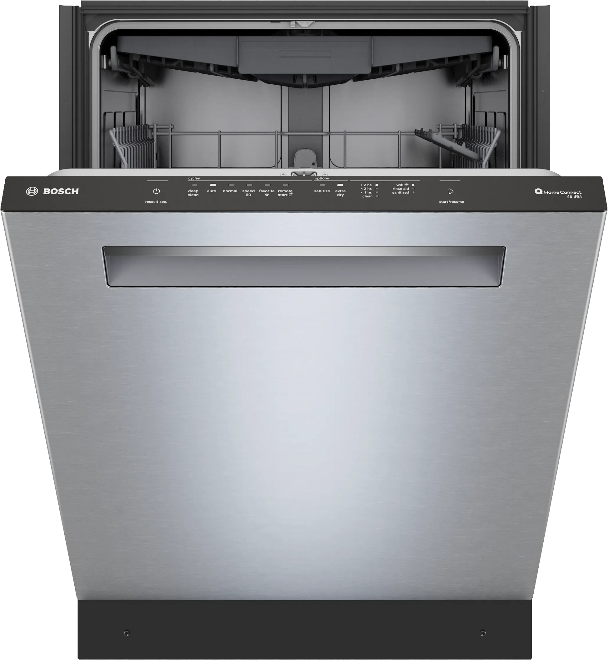 - Brushed steel finish