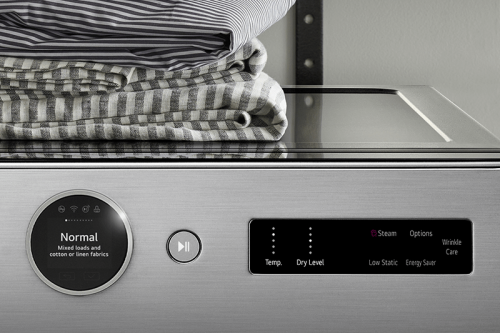 - Options: Cycle Optimization, Damp Dry Signal, Wrinkle Care, Control Lock, Wi-Fi, Energy Saver, TurboSteam®, Reduce Static, Remote Start, Drum Light, Signal, Cycle List Edit
