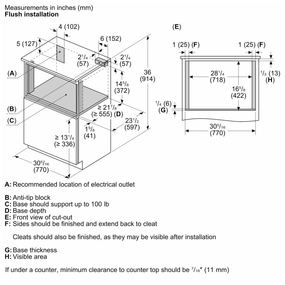 Required Cutout Size (HxWxD) (in) 14 13/16'' x 28 1/2'' x 23 1/2''