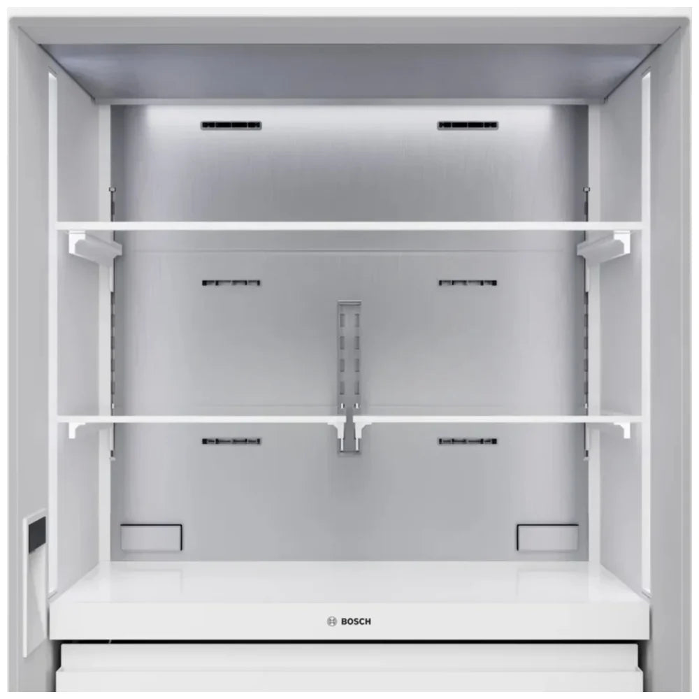 The Bosch B30IB100SP built-in bottom freezer refrigerator brings premium preservation technology and sleek, panel-ready design together in a streamlined 30" width, making it an ideal choice for high-end kitchens where space and style both matter. With a generous 16.5 cu. ft. total capacity, this counter-depth model maximizes usable storage while sitting flush with surrounding cabinetry for a custom, integrated look. At the heart of its performance is VitaFresh® technology, a specialized freshness system that uses precise humidity and temperature control to help keep produce, meats, and cheeses fresher for longer, reducing food waste and extra trips to the store. Inside, a bright stainless steel back wall and expansive LED lighting showcase your ingredients beautifully, while adjustable glass shelves, metal door bins, and a full-width deli drawer make it easy to organize everything from tall bottles to party platters. The hidden internal water dispenser pairs with the UltraClarityPro® filtration system to deliver exceptionally clean, great-tasting water without disrupting the clean exterior lines of your cabinetry, and the integrated ice maker provides a steady supply of ice for everyday use and entertaining. A full-color touch control panel positioned at an ergonomic height gives you intuitive access to temperature settings, specialty modes like SuperCool® and SuperFreeze®, and other key functions at a glance, so you can fine-tune performance with just a tap. The three-tiered freezer drawer system glides out smoothly on synchronously running rails, revealing metal drawers that keep frozen foods neatly separated and easy to reach, instead of buried in a single deep bin. Thoughtful details such as the Softclose® flat hinge ensure doors and drawers close quietly and gently, protecting both the appliance and your custom panels over time. Energy-efficient operation and advanced cooling systems help maintain consistent temperatures throughout the cavity, supporting food quality while keeping operating noise impressively low. Designed to accept custom panels and handles, the Bosch B30IB100SP offers the flexibility to blend seamlessly into virtually any kitchen aesthetic, delivering a refined, built-in look along with standout freshness, organization, and everyday convenience that set it apart from many standard 30" refrigerators.