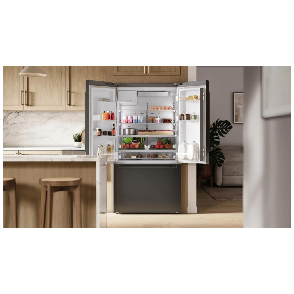 Bosch B36CD52SNB French Door Refrigerator, 36 inch Width, ENERGY STAR Certified, Counter Depth, 21.6 cu. ft. Capacity, Water Dispenser (Exterior), Ice Dispenser (Thru Door), Black Stainless Steel colour