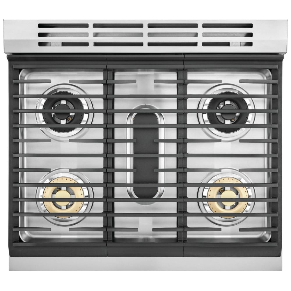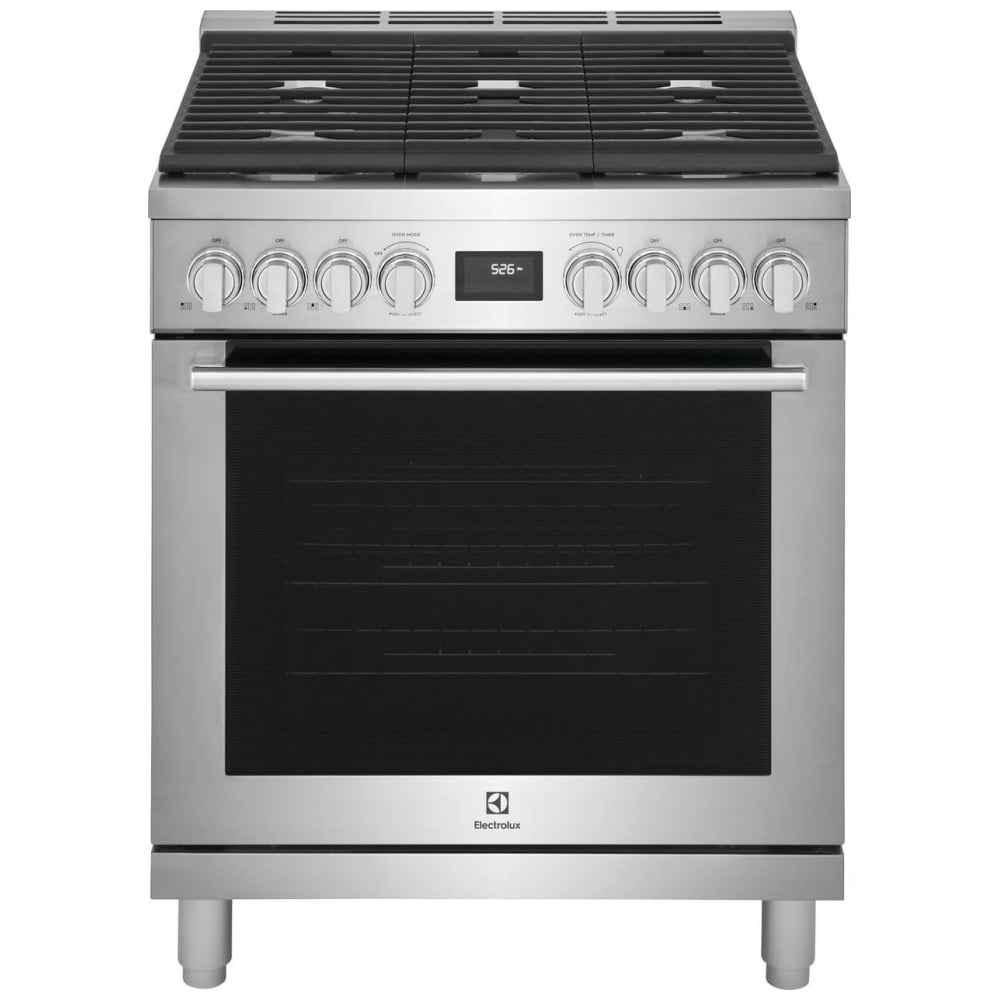 Power TypeNGSize30"Installation TypeFree-StandingColorStainless SteelCollapse group headingCooktopCooking Surface TypeGasGrate MaterialCast IronGrate Quantity3Grate StyleContinuousSealed BurnersYesCollapse group headingCooktop PerformanceRight Front Element Burner18,000 / 750 BTU DualRight Rear Element Burner12,000 / 3,000 BTULeft Front Element Burner18,000 / 750 BTU DualLeft Rear Element Burner12,000 / 3,000 BTUCenter Element Burner10000 BTUCollapse group headingCooking ControlsBakeYesBread ProofYesBroilYesChild LockYesConvection BakeYesConvection RoastYesCook TimeYesDelay StartYesKeep WarmYesKitchen TimerYesProbeYesSelf CleanNoTemperature DisplayYesCollapse group headingOvenBake Element17000 BTUBake Element TypeHiddenBroil Element11500 BTUBroil SystemYesConvectionYesConvection Element1000 WattsConvection TypeTrueNumber of Convection Fans1Number of Rack Positions6Oven Interior ColorGrayOven Light Quantity2Oven Light TypeHalogenOven Light Watts40 WattsRack Type 1GlideRack Type 1 Quantity1Rack Type 2FlatRack Type 2 Quantity2Window TypeLargeCollapse group headingControlsSabbath ModeNoCollapse group headingDisplayControl LocationFrontDisplay Light ColorWhiteDisplay TypeLEDCollapse group headingDimensions and VolumeMinimum Height35 3/8"Maximum Height36 5/8"Width29 15/16"Depth25 7/8"Depth With Door 90° Open46 11/16"Oven Interior Height17 3/8"Oven Interior Width24 5/16"Oven Interior Depth18 7/16"Oven Capacity4.5 Cu. Ft.Collapse group headingElectrical SpecificationsAmps @ 120 Volts9.2 AmpsConnected Load @ 120V1.1 kWMinimum Circuit Required15 AmpsCollapse group headingInstallationAdjustable Leveling LegsYesIncluded Power Cord Type3-Prong PlugLP Conversion Kit IncludedYesPlinthYesPower Cord IncludedYesCollapse group headingGeneral SpecificationsProduct Weight223 lbsProp 65 LabelYesWarranty - Labor1 YearWarranty - Parts1 YearCollapse group headingCertifications and ApprovalsADA CompliantYesCSA ListedYesRoHSYes