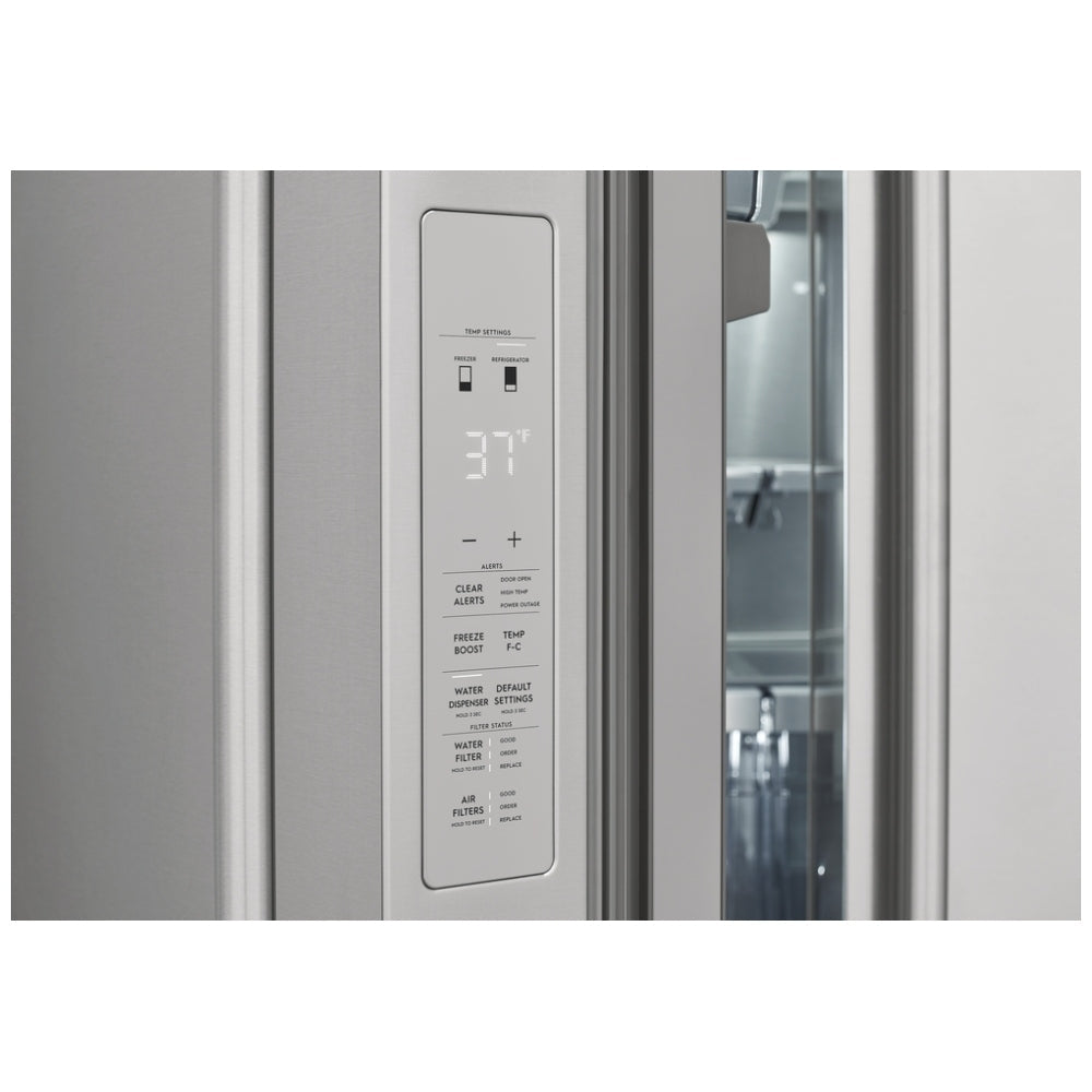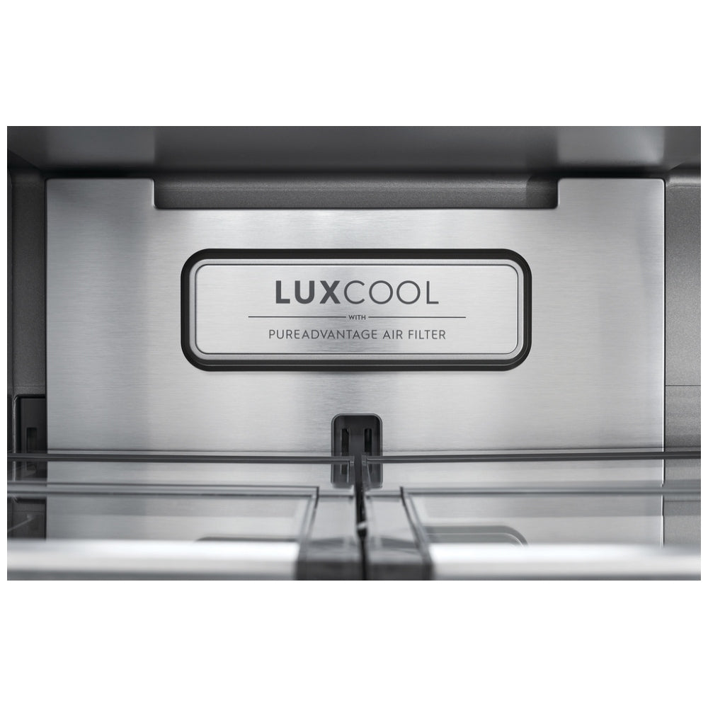 The Electrolux ERFG2393AS Full Size Refrigerator features TasteLock Plus Crispers, Flexible Organization System, LuxCool Cooling System, Auto-Close Doors, Pure Advantage Water & Ice Filter, Pure Advantage Refrigerator Air Filter, Tall Ice and Water Pocket, Counter-Depth Design, Quick Freeze, and Premium LED Lighting.