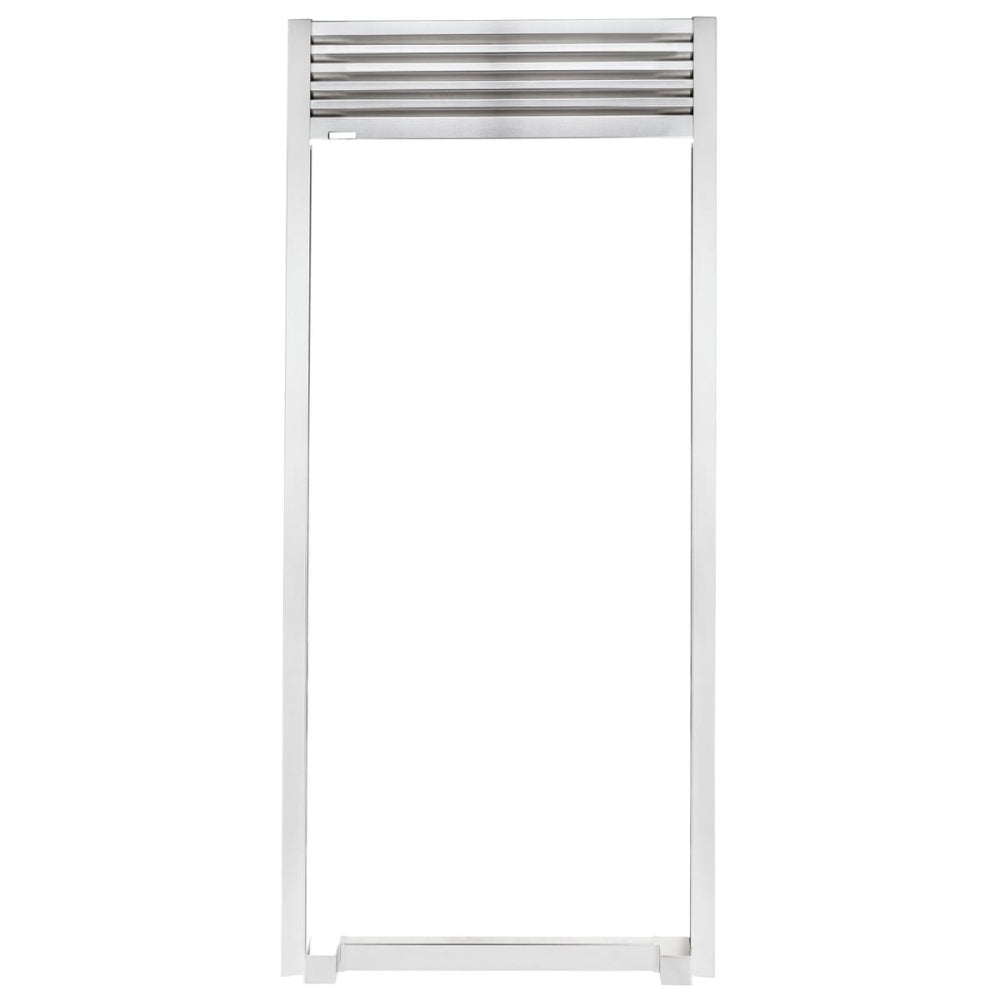 The features of the Electrolux TRMKTSS1LV84 Refrigerator Trim Kit include a stainless steel material, louvered design, and seamless built-in look.