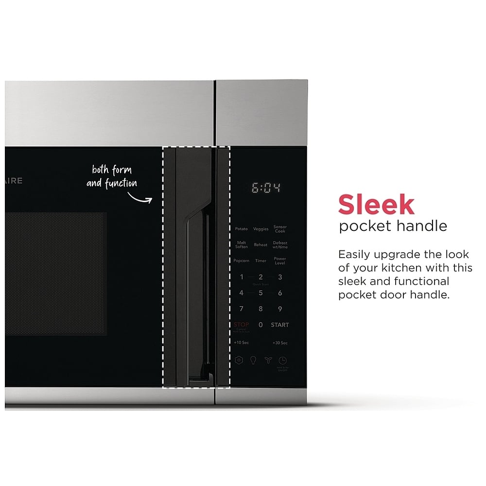 This microwave features Sensor Cook Technology, Convenient Preset Cooking Options, Cooktop LED Lighting, Bright Interior LED Lighting, and a Sleek Pocket Handle.