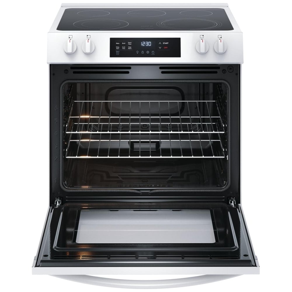 - What are the features of the Frigidaire 30" Front Control Electric Range FCFE306CAW?