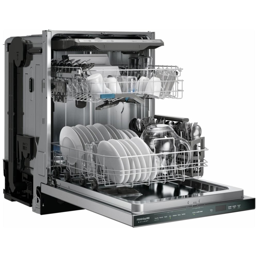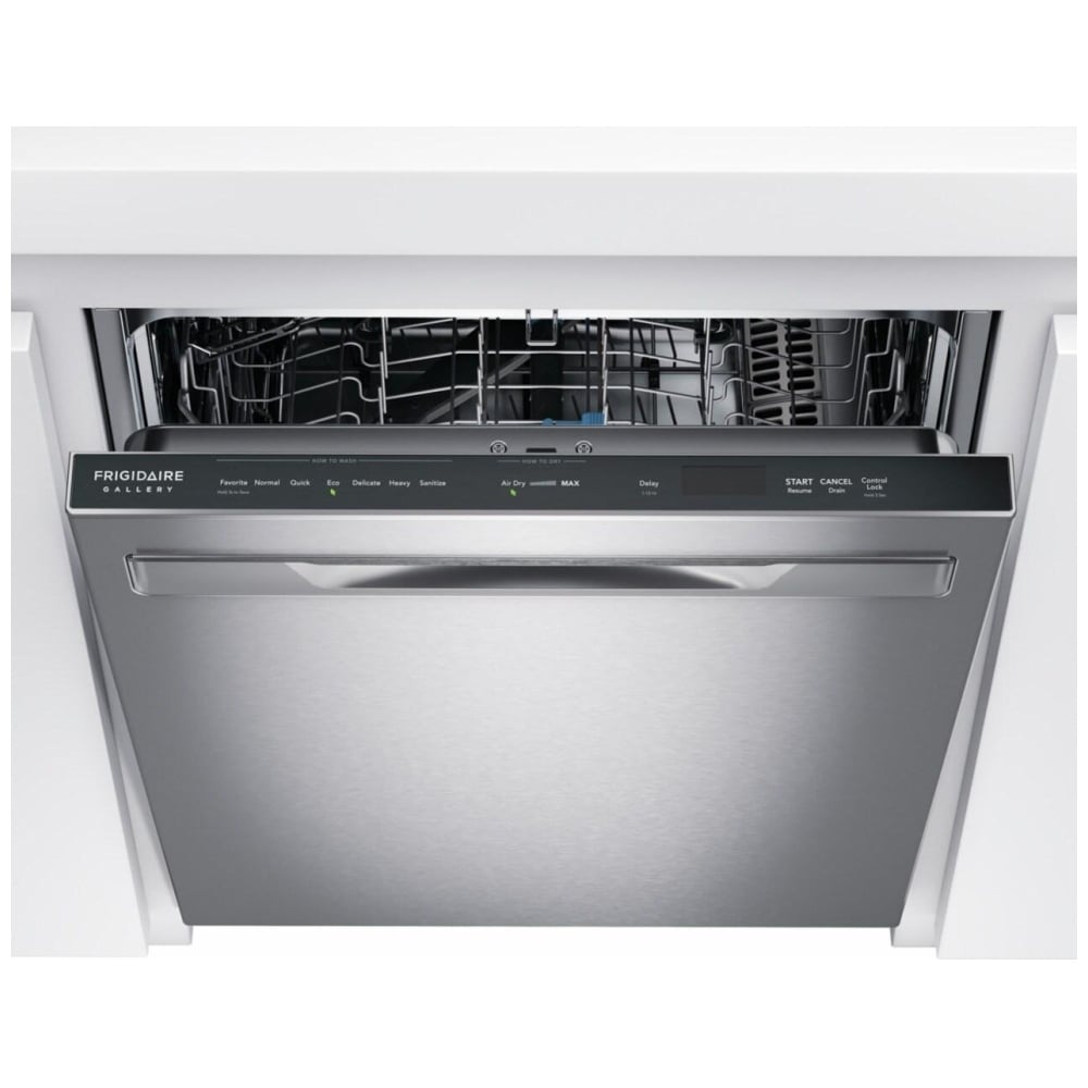 The Frigidaire Gallery GDSP4715AF Dishwasher has CleanBoost Technology, 7 wash cycles, 14 capacity, and Energy Star certification.