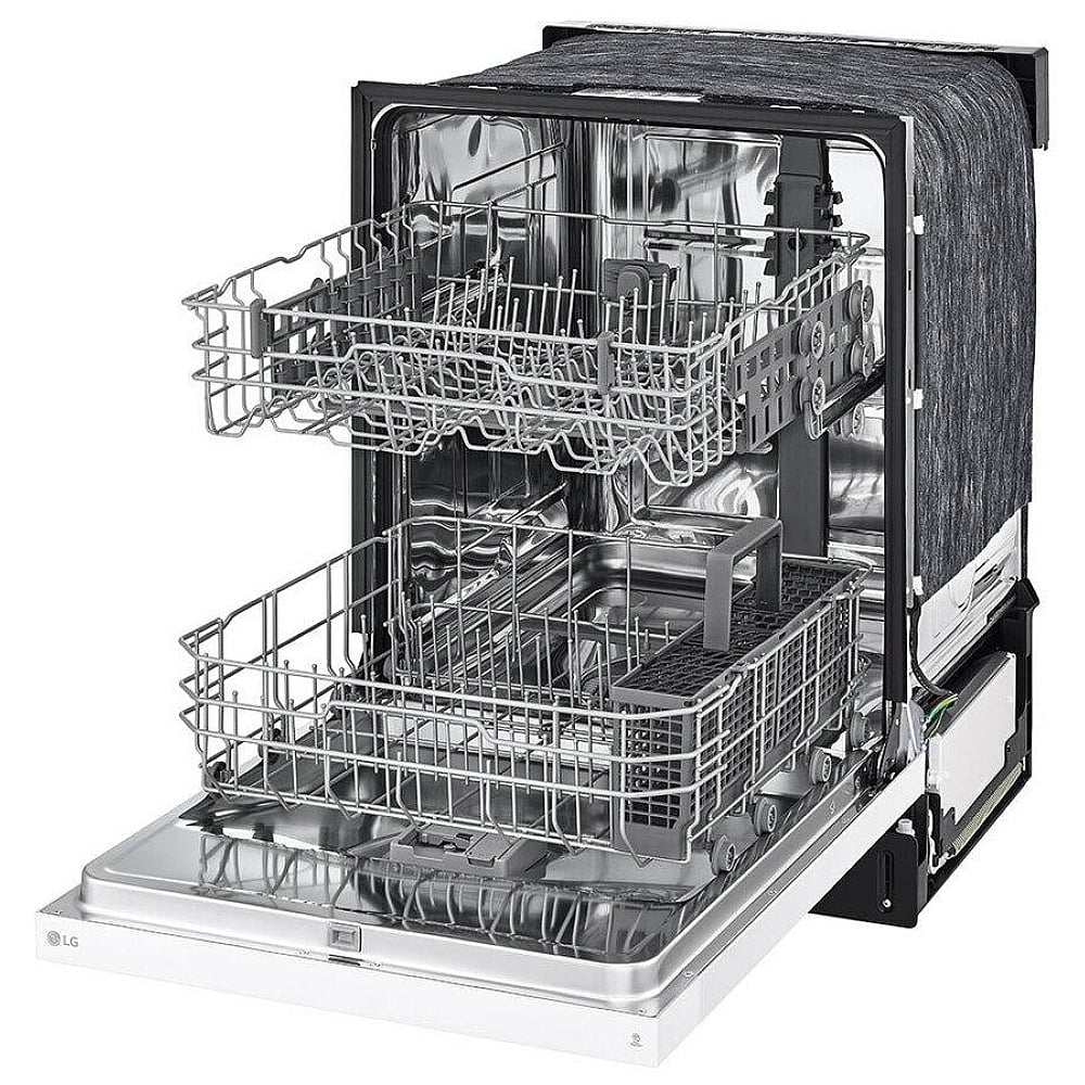 The LG LDFC2423W Front Control Dishwasher measures 24" Exterior Width, 52" Height, and 24" Depth.
