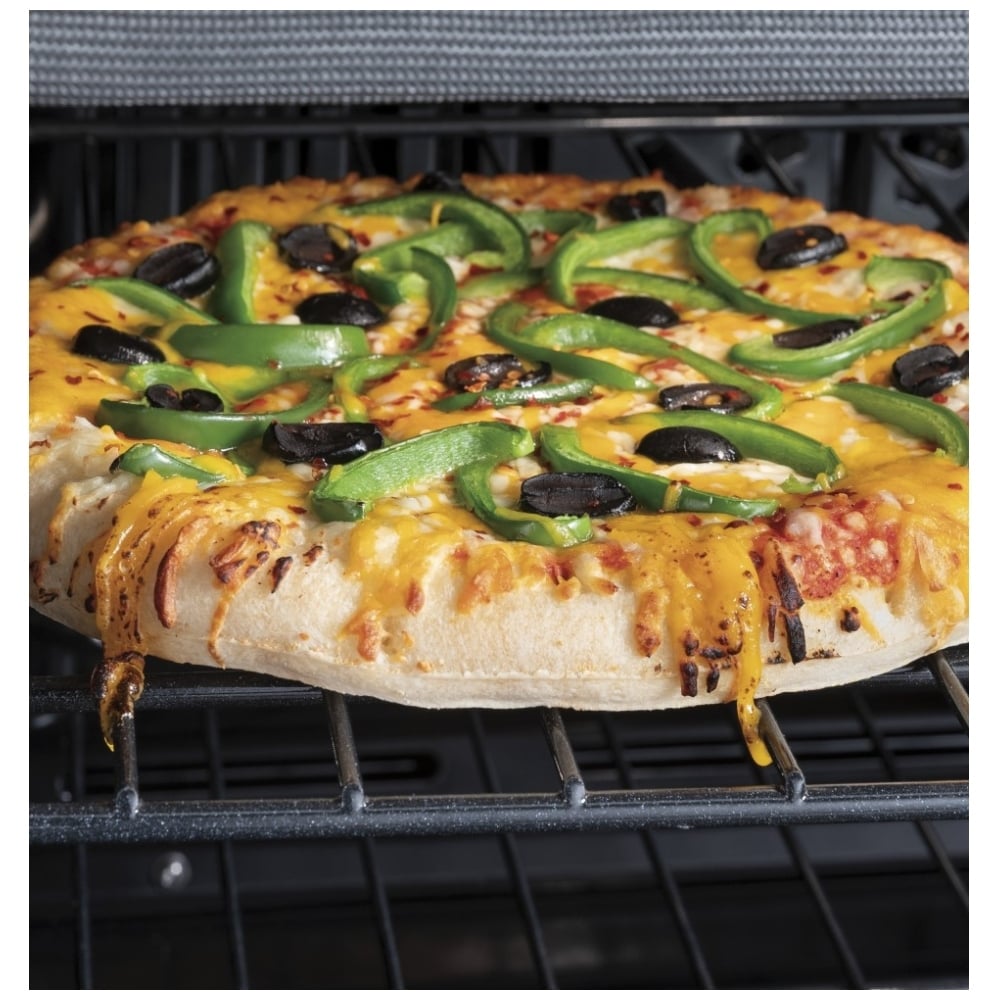 The oven has Wifi Enabled, SmartHQ App control, Self-Clean with optional Steam Clean, and Fit Guarantee.