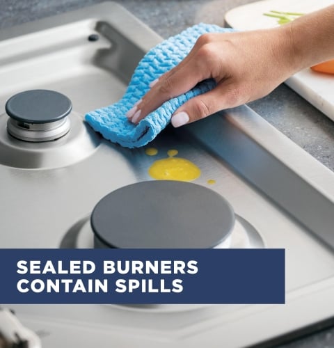 - Sealed cooktop burners for quick and easy cleaning
