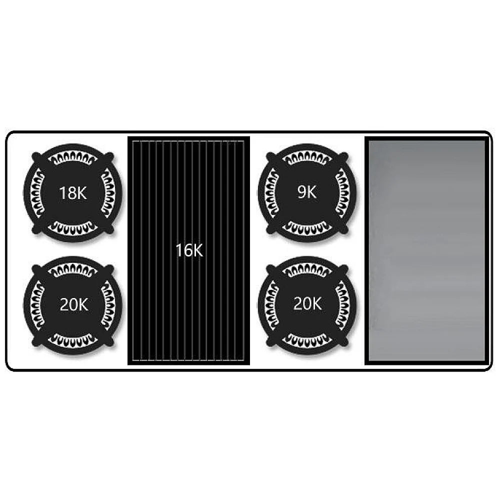 A dual-stacked PowerBurner that reaches a maximum power level of 9,000 BTU and fulfills most everyday cooking functions with turndown of 1,000 BTU.
