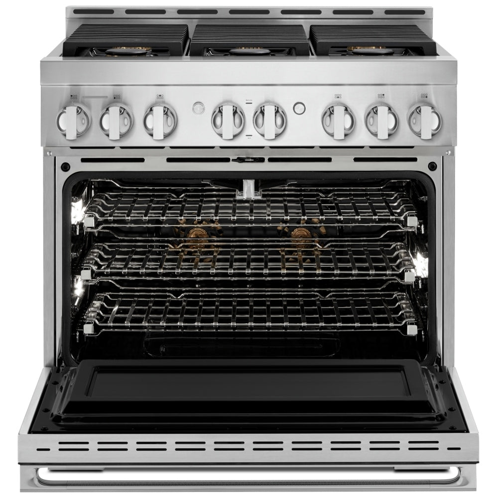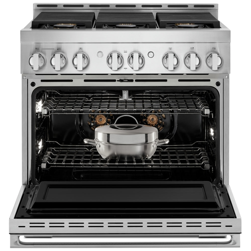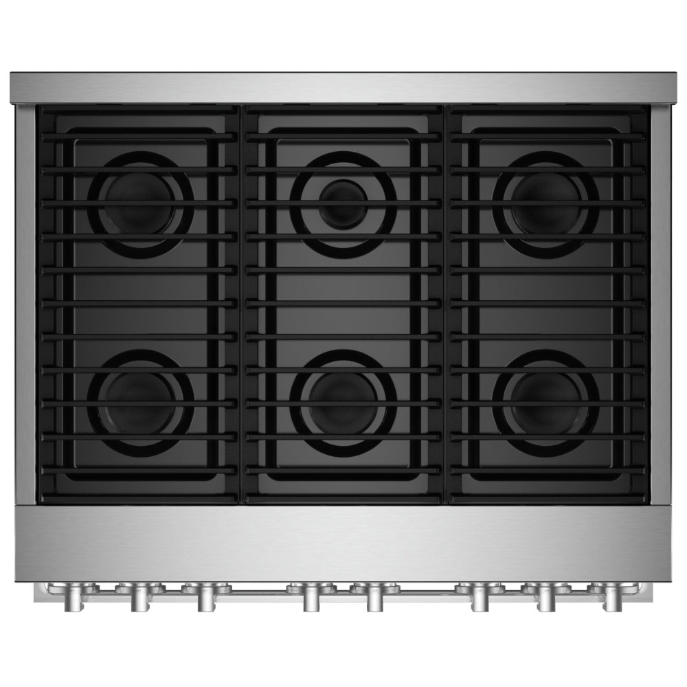 JennAir Rise JGRP436HM Gas Range, 5.1 cu. ft. Capacity, 36 inch Exterior Width, Self Clean, True Convection, 4 Burners, 20,000 BTU