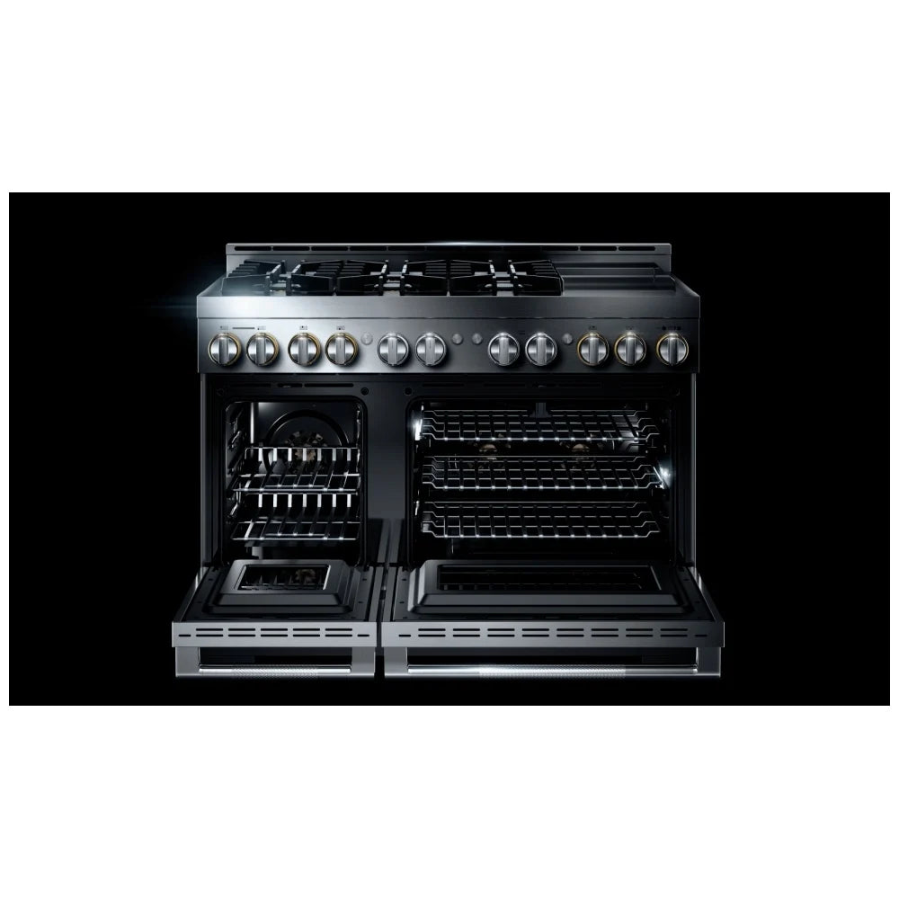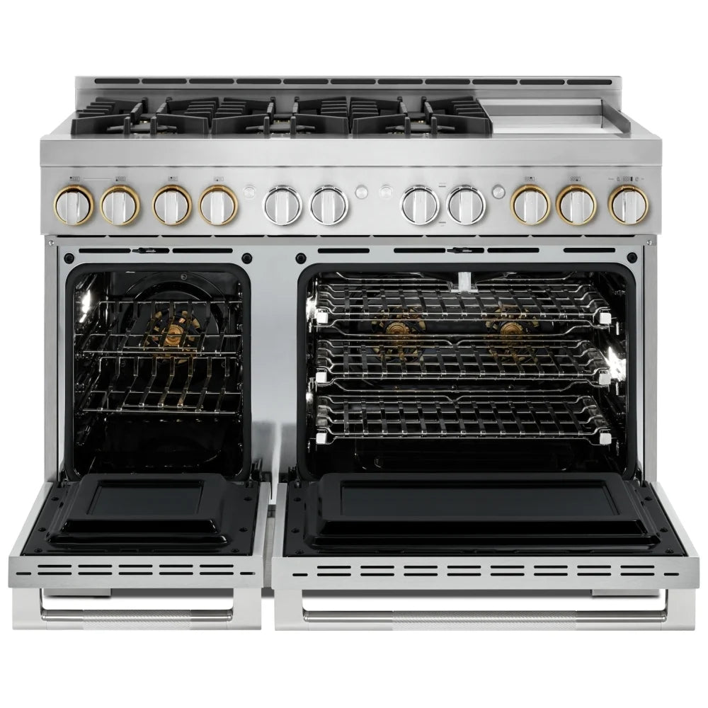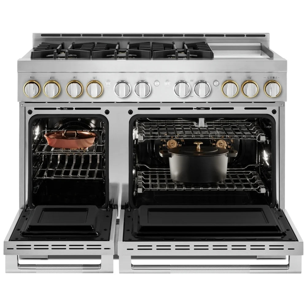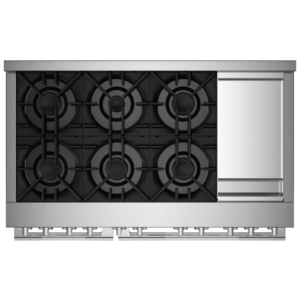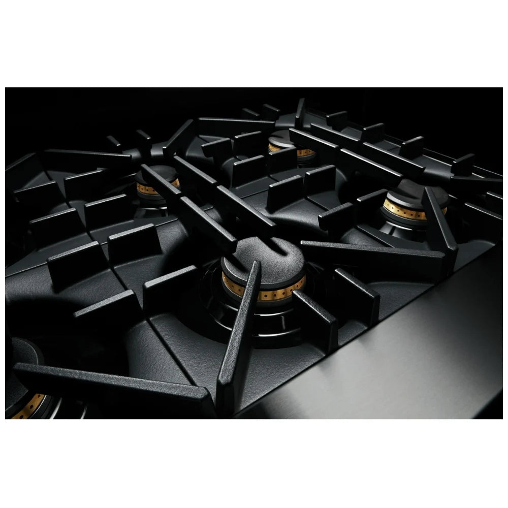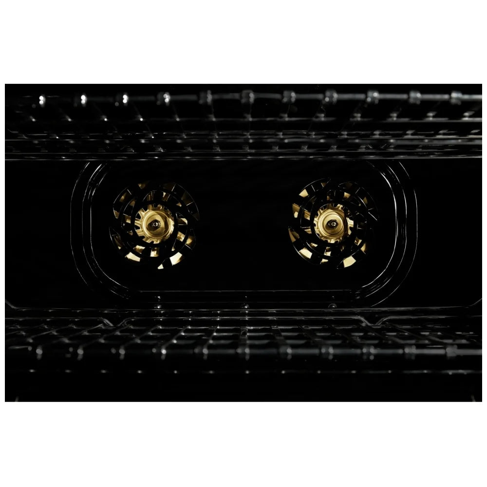 Precise, dual flames produced by precision-drilled brass burners. Inside the oven cavity, steady heat weaves around each flat tine. From searing select cuts and simmering sauces to succulent roasts, these ranges offer unmistakable firepower.