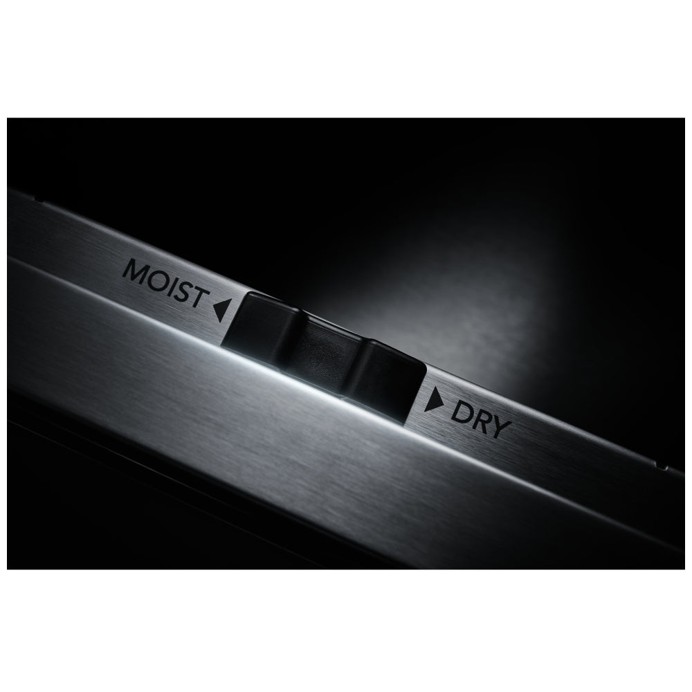 Two humidity settings allow you to precisely control the moistness or crispness of food by opening or closing the vent slots in the door. The Moist setting holds moisture in the drawer to keep food soft, while the Dry setting allows steam and moisture to escape from the drawer to keep food crispy.