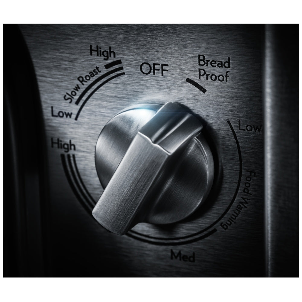 This intuitive temperature control automatically monitors and regulates the warming drawer s temperature.