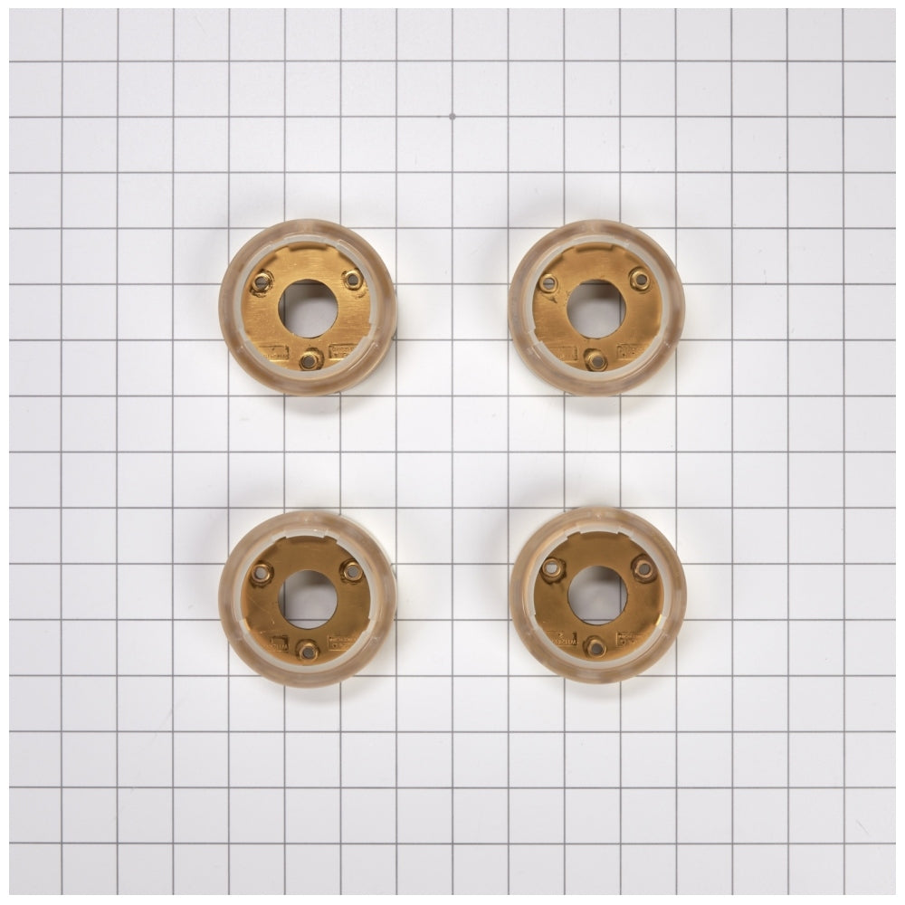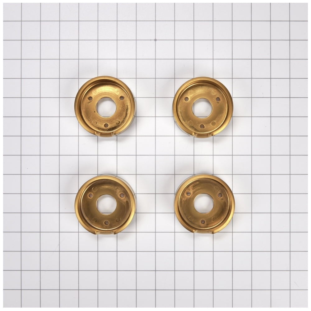 Enhance the look of your appliance with the Set of 4 Range Brass Knob Bezels. These brilliant brass-finished bezels easily fit behind your oven's knobs, adding a touch of unique warmth to your kitchen. Sold as a set of 4; each measures 3" D. This accessory is designed to be used with JennAir® ranges; check to see if your model number is compatible. Replacing this accessory will require no disassembly or repair experience. Make sure you unplug the oven or shut off the house circuit breaker for the oven before installing this part.