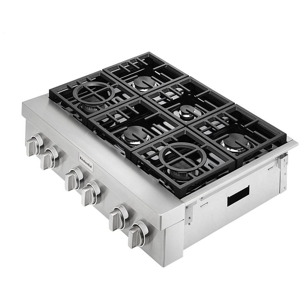 - 6 burners, including 2 20,000 BTU Ultra Power Dual-Flame Burners, 1 5,000 BTU Simmer & Melt Burner, and 3 15,000 BTU Burners