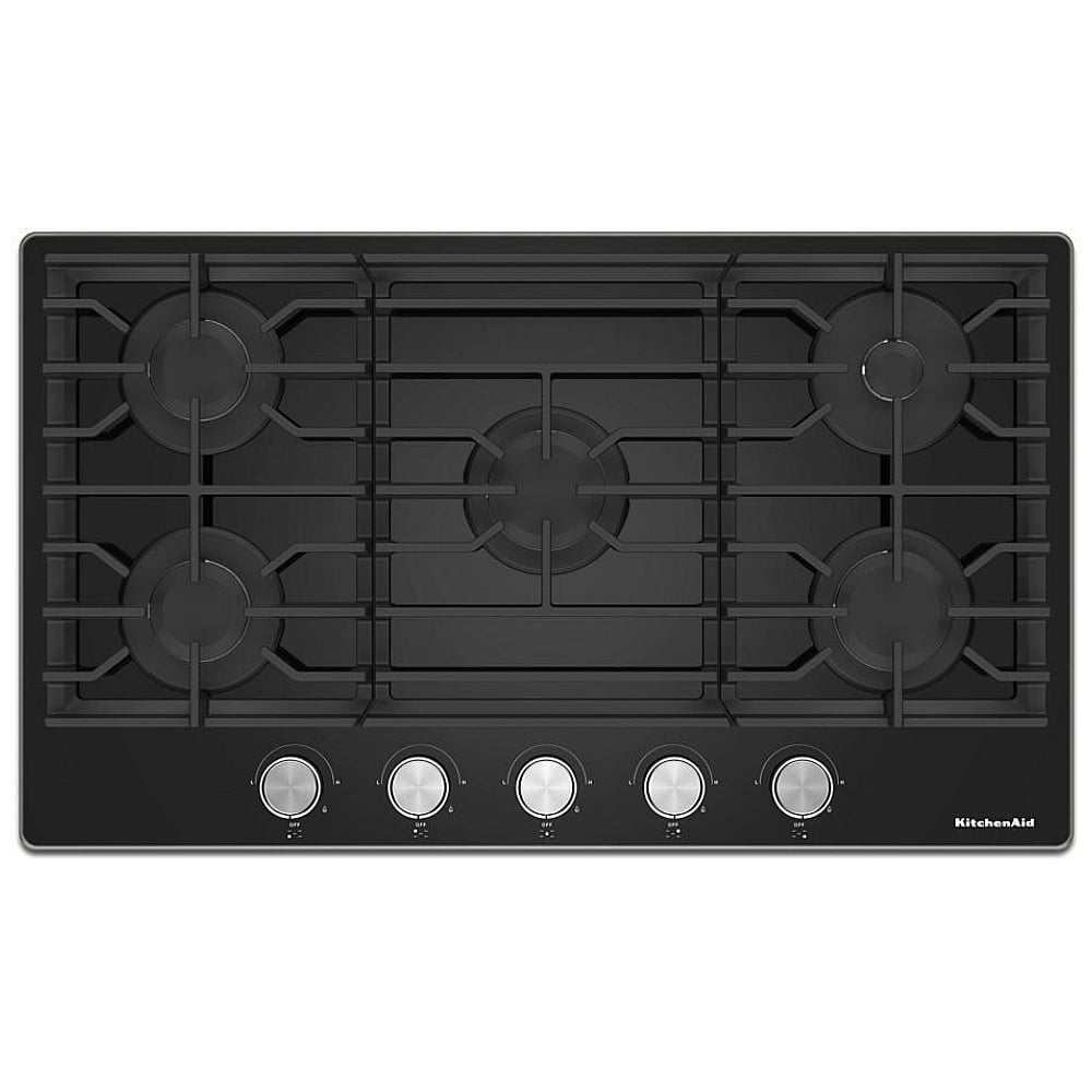 The KitchenAid KCGG536PBL Gas Cooktop has 5 burners.