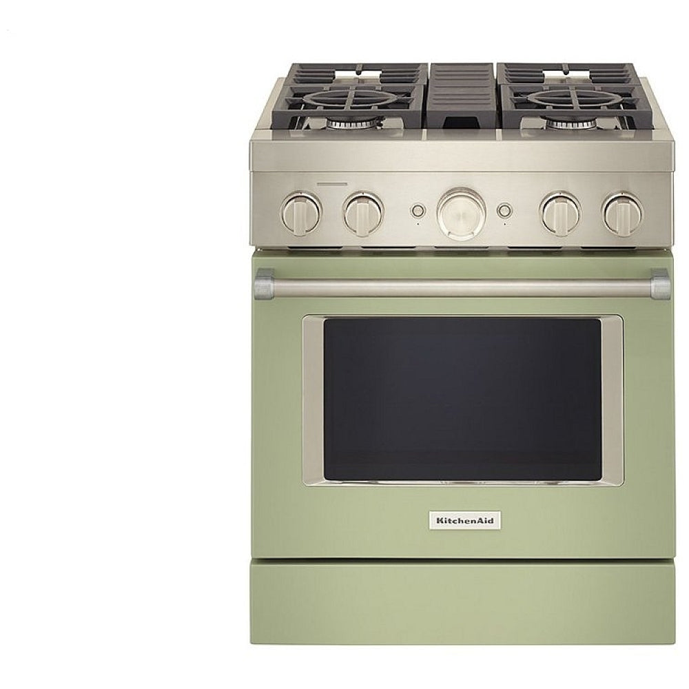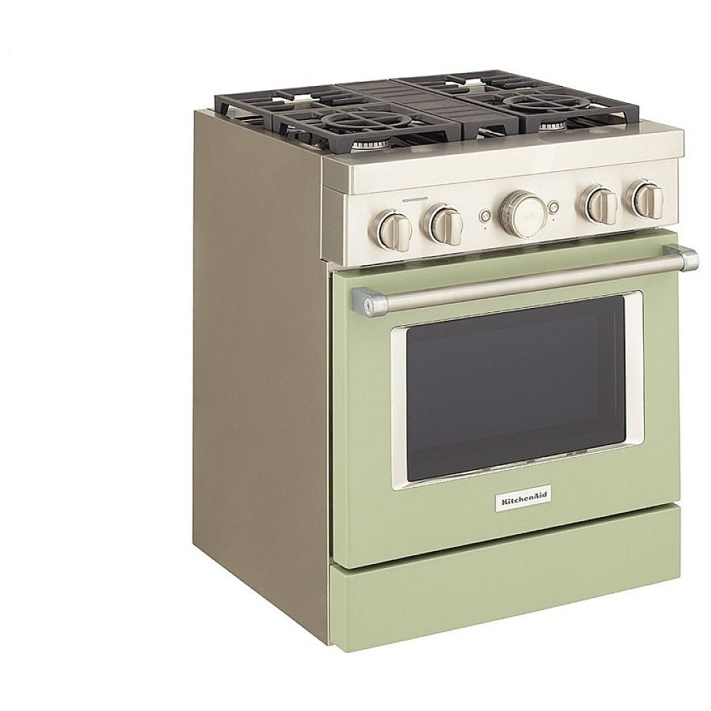 KitchenAid KFDC500JAV Dual Fuel Range, 30 inch Exterior Width, Self Clean, Convection, 4 Burners, 4.1 cu. ft. Capacity, 1 Ovens, Avocado Cream colour True European Convection, Temperature Probe