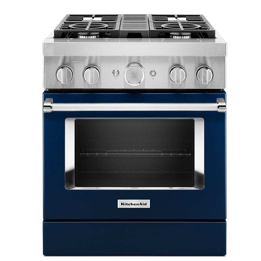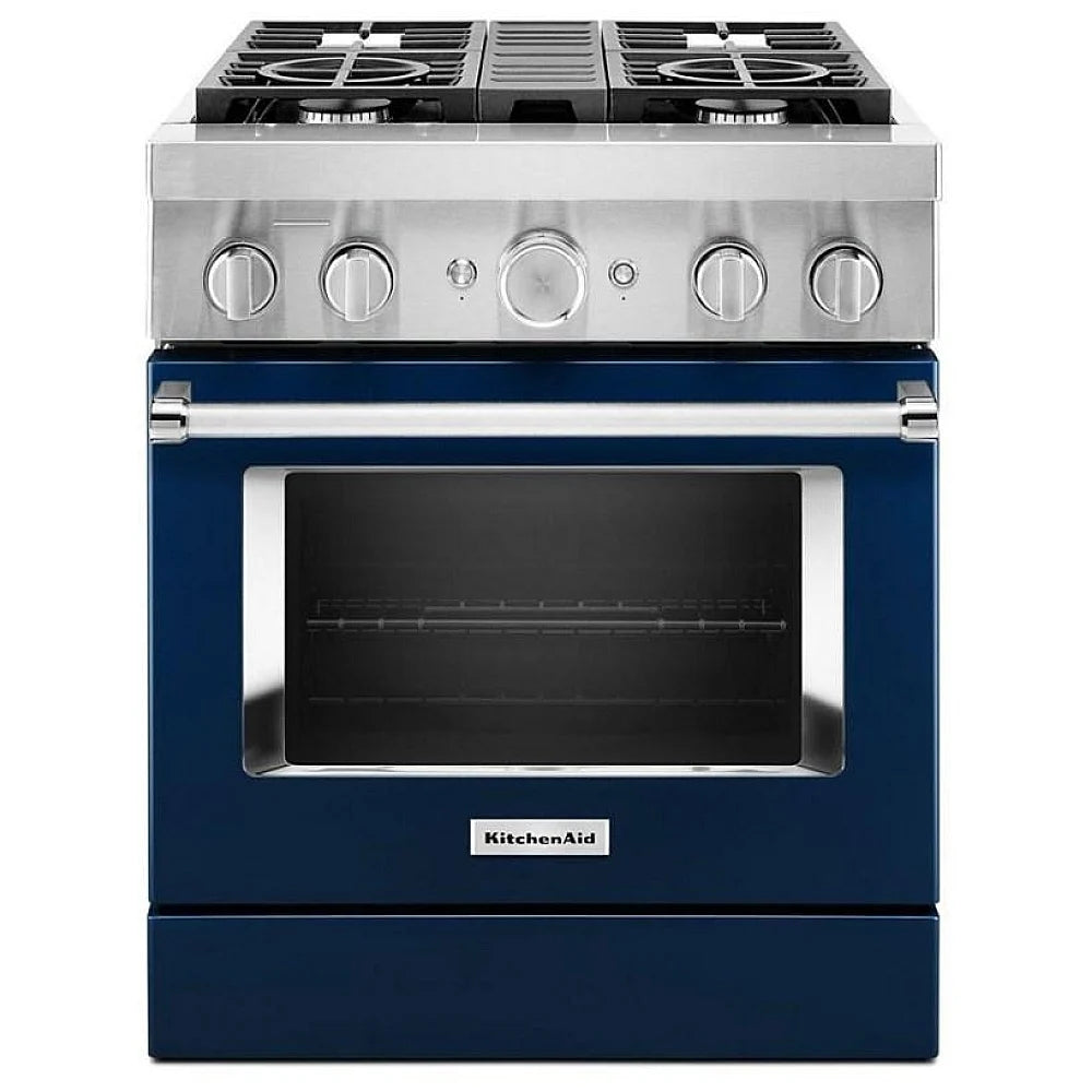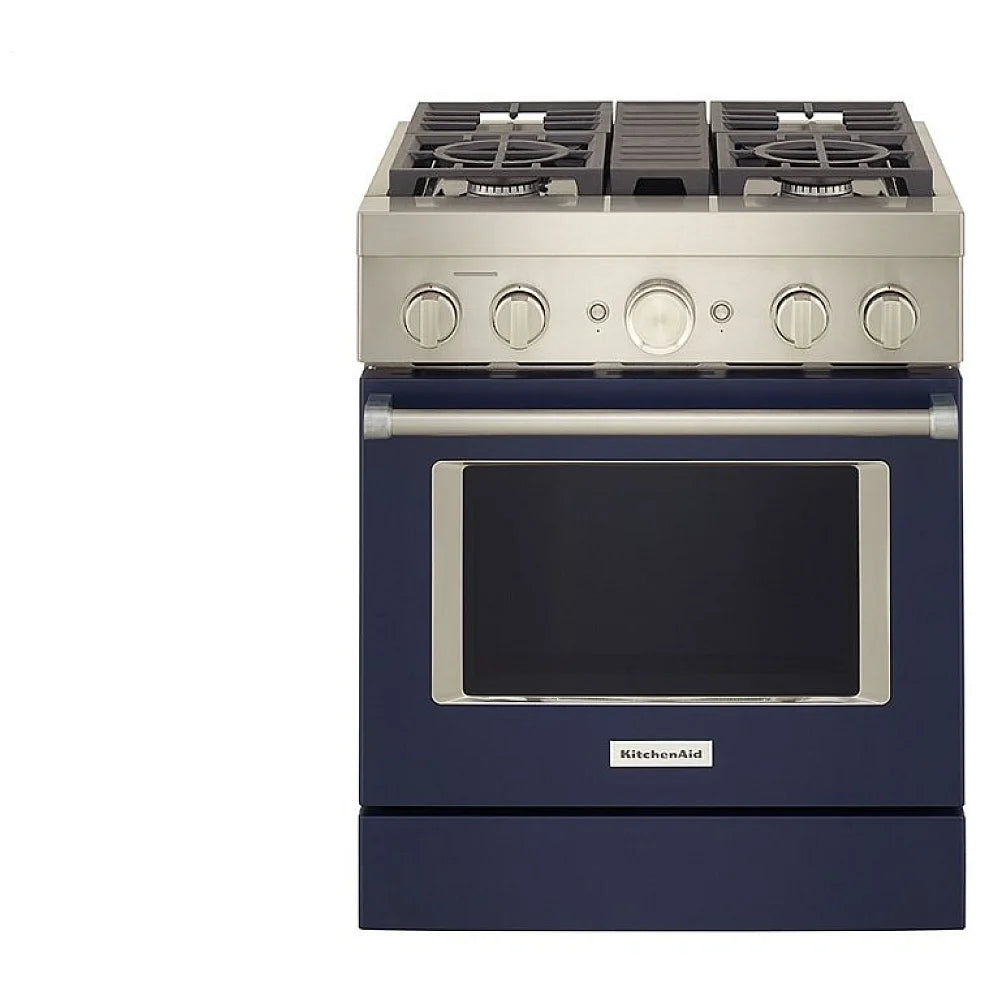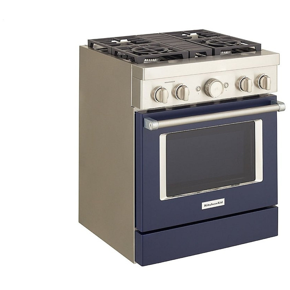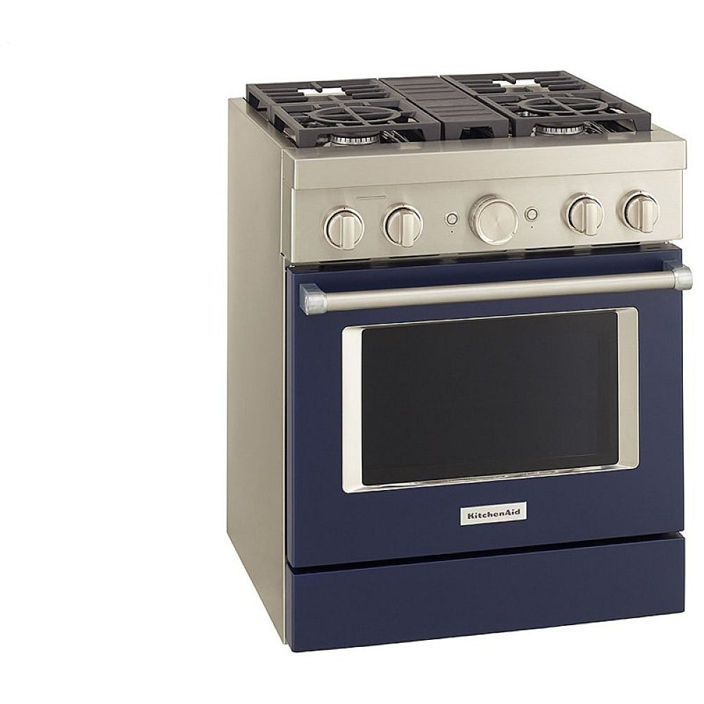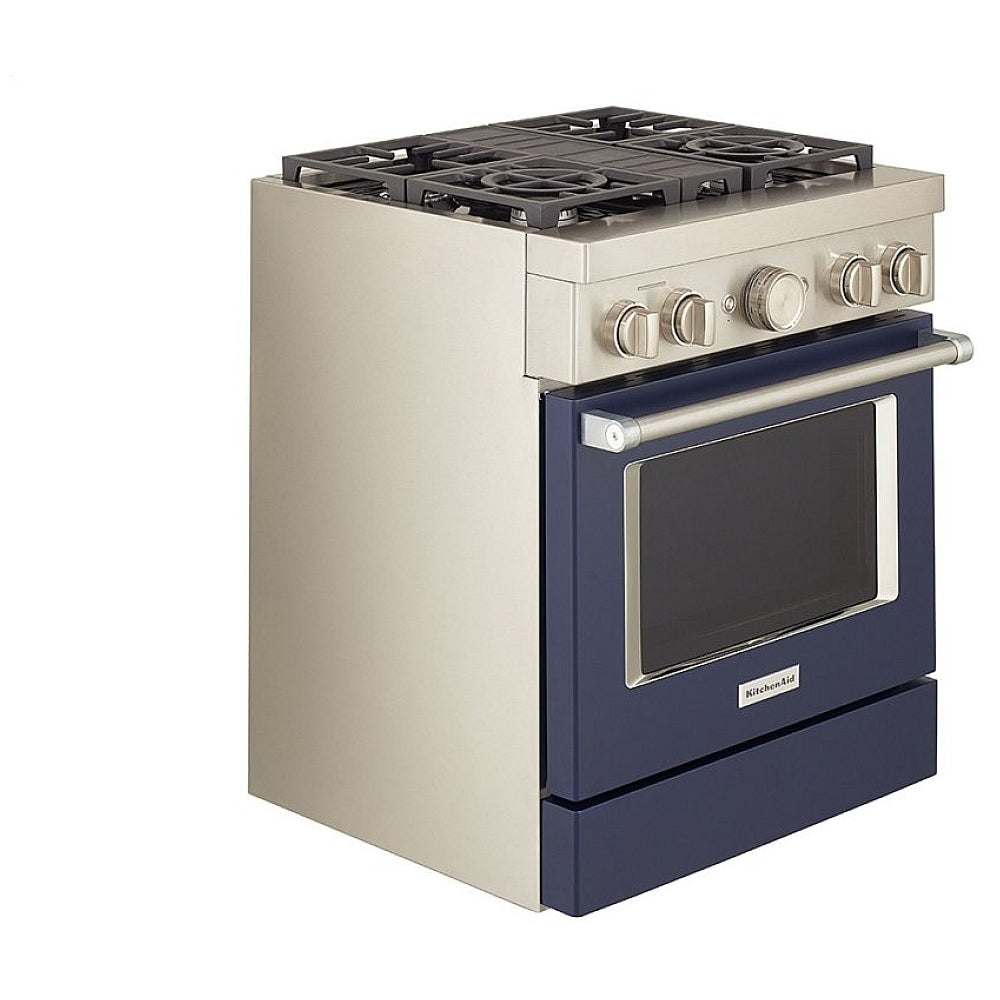 KitchenAid KFDC500JIB Dual Fuel Range, 30 inch Exterior Width, Self Clean, Convection, 4 Burners, 4.1 cu. ft. Capacity, 1 Ovens, Ink Blue colour True European Convection, Telescopic Gliding Extension Rack, Temperature Probe