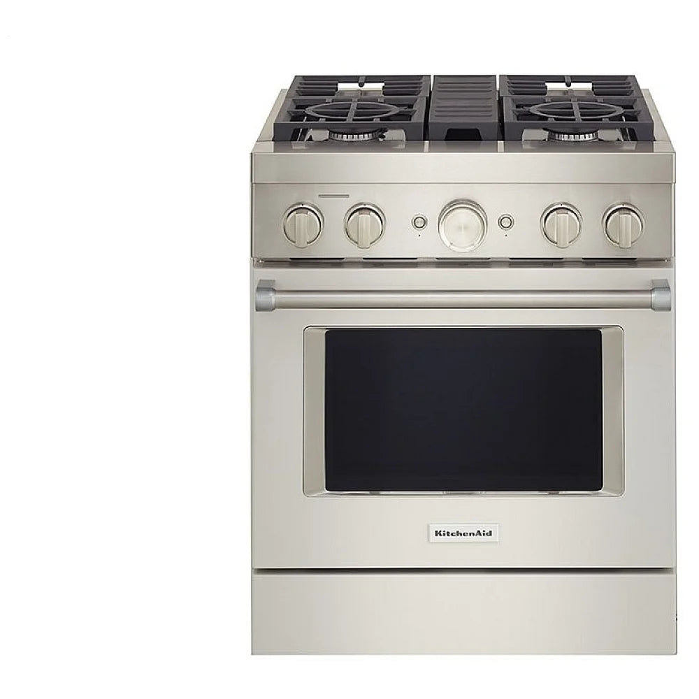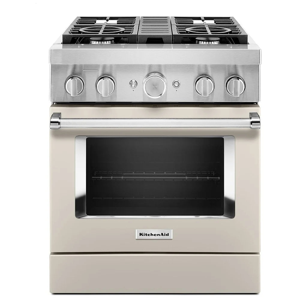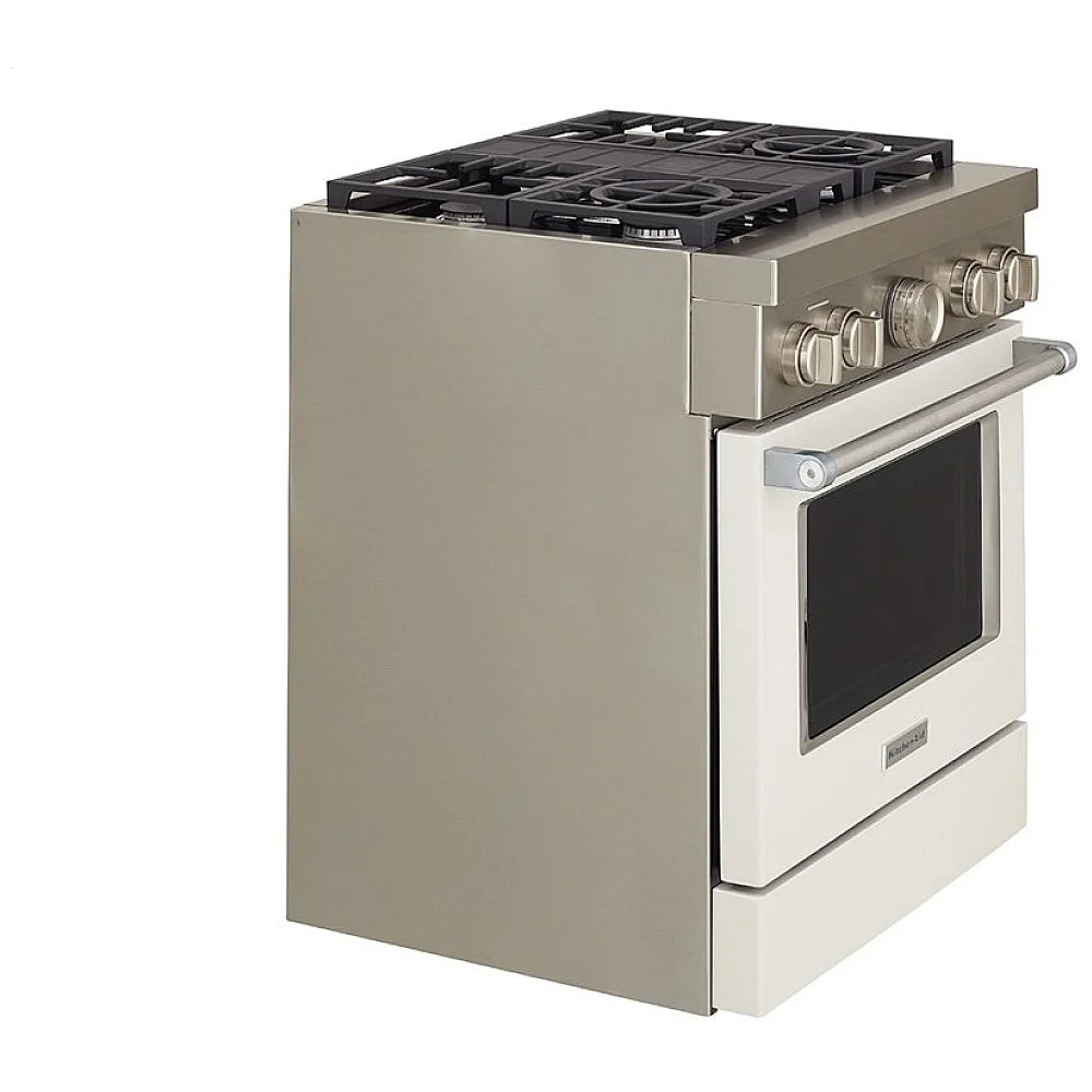 KitchenAid KFDC500JMH Dual Fuel Range, 30 inch Exterior Width, Self Clean, Convection, 4 Burners, 4.1 cu. ft. Capacity, 1 Ovens, Milk Shake colour True European Convection, Telescopic Gliding Extension Rack, Temperature Probe