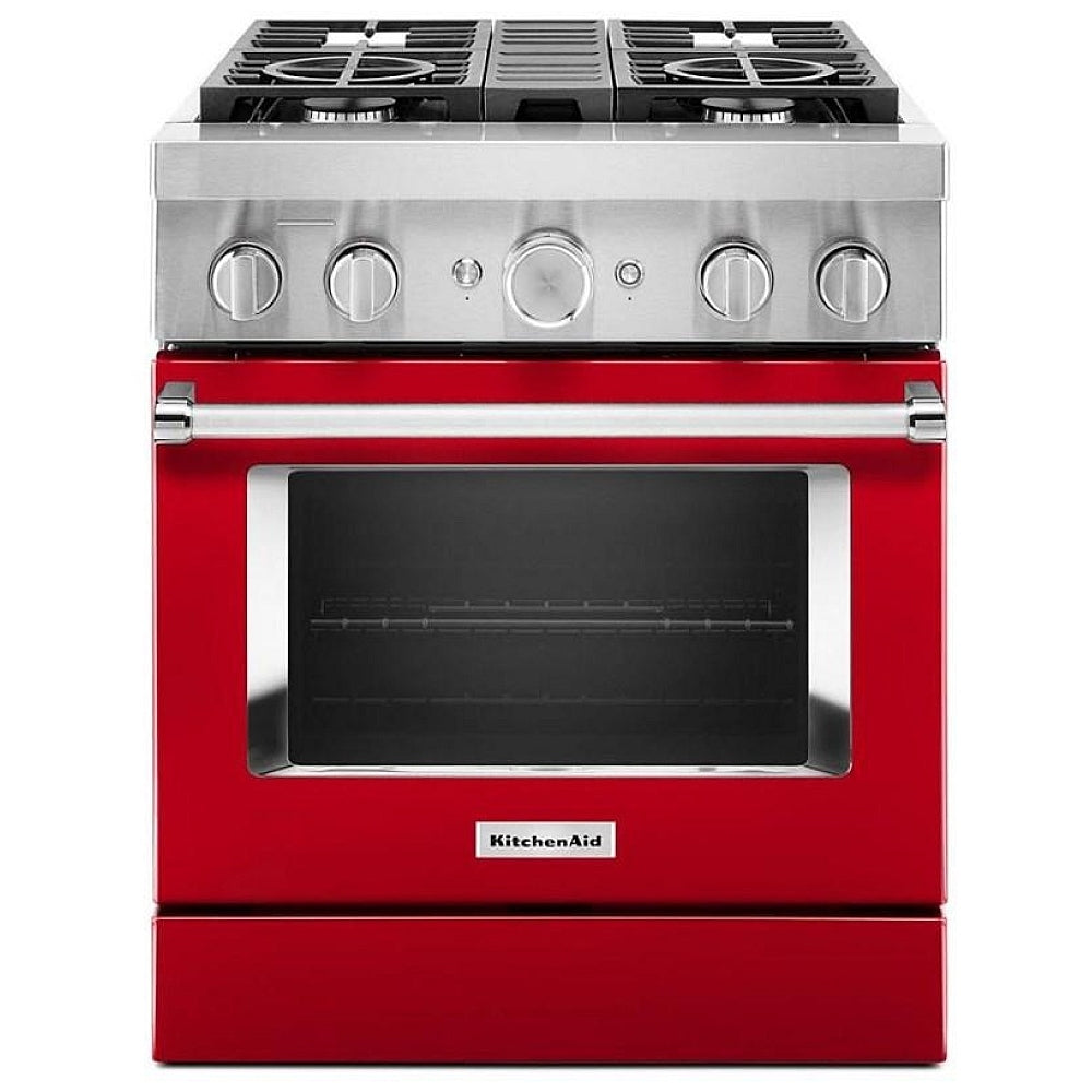 KitchenAid KFDC500JPA Dual Fuel Range, 30 inch Exterior Width, Self Clean, Convection, 4 Burners, 4.1 cu. ft. Capacity, 1 Ovens, Passion Red colour True European Convection, Telescopic Gliding Extension Rack, Temperature Probe