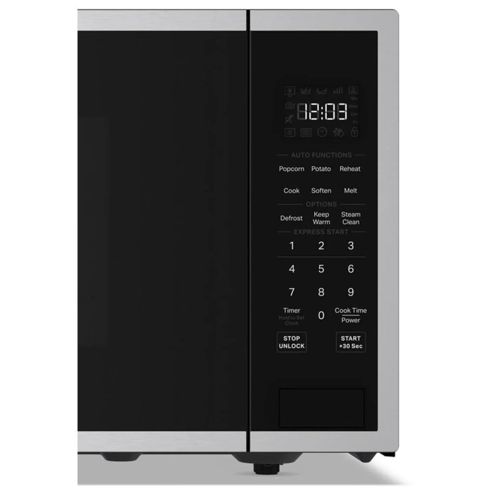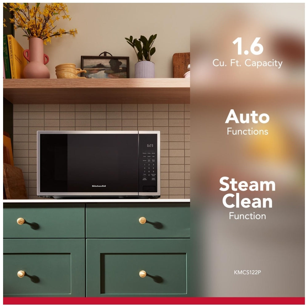 The KitchenAid® KMCS522SPS countertop microwave is designed for home cooks who want far more than basic reheating, bringing true multi‑function performance to a compact footprint. With a generous 1.5 cu. ft. capacity and a sleek 21 3/4" width, it easily accommodates everything from weeknight leftovers to a 9" x 9" casserole dish, yet still fits comfortably on most countertops or within a matching trim kit for a built‑in look. At the heart of this model is its powerful combination of Air Fry Mode, convection and grill capabilities, allowing you to crisp, brown, bake, roast and sear in a single appliance. The dedicated Air Fry Mode uses dual heating elements and a fan to circulate hot air around the included air fry basket, delivering crispy results with less oil and no preheating, so you can enjoy fries, wings and vegetables with a satisfying crunch straight from your microwave. A robust 1400‑watt convection element turns the cavity into a true mini‑oven, reaching temperatures up to 425°F for small‑batch baking or roasting a whole chicken, while Oven Functions for Bake and Roast, plus a specialized Roast Mode, help maintain even, enveloping heat for consistently tender, well‑browned results. For finishing touches, Grill Mode uses a high‑output top element and the included basket to sear and broil, adding appetizing char and caramelization that many standard microwaves simply can’t match. Everyday tasks are just as thoughtfully handled, with 1000 watts of microwave power for fast, thorough heating, along with Auto Functions for popcorn, defrost, cook, soften/melt, reheat and keep warm that automatically adjust time and power to take the guesswork out of common jobs. Express Start options let you add or start cooking in quick 30‑second increments up to 3 minutes, while Timed Defrost simplifies thawing by automatically setting a lower power level for the exact duration you choose. Touch‑activated electronic controls with a clear LED display make it easy to navigate modes and monitor progress at a glance, and the stainless exterior features a PrintShield™ finish that resists fingerprints and smudges so it stays looking polished with minimal effort. Whether you leave it freestanding or pair it with an optional trim kit for a seamless built‑in installation, the KitchenAid® KMCS522SPS delivers the versatility of multiple appliances in one stylish, space‑saving microwave.
