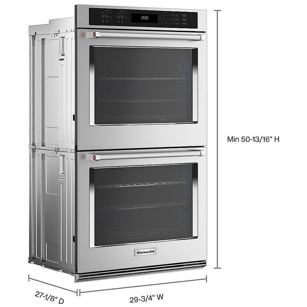 - What are the dimensions of the KitchenAid KOED530PSS Double Wall Oven?