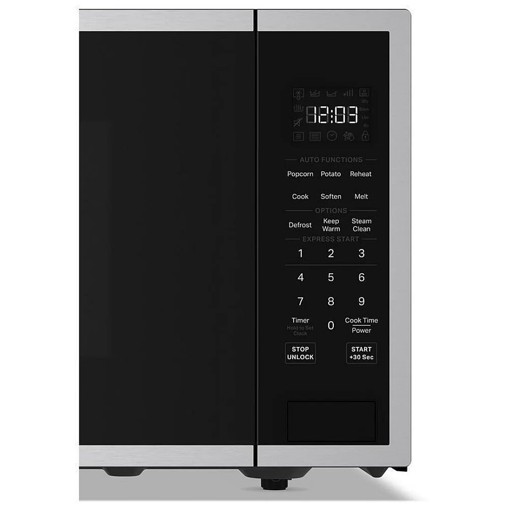 The KitchenAid® YKMCS122SPS countertop microwave is designed for home cooks who want power, precision and a premium built‑in look without sacrificing everyday convenience. With a generous 1.6 Cu. Ft. capacity, it easily accommodates everything from family‑size leftovers to a 2.25‑quart casserole dish, while its compact footprint and approximately 21 3/4‑inch width make it a natural fit on most countertops or within a standard cabinet opening when paired with an optional trim kit. What truly sets this model apart is its combination of high 1200‑watt cooking power and advanced Sensor Functions that automatically adjust time and power levels as your food cooks or reheats, taking the guesswork out of everything from vegetables and pasta to last night’s takeout. Instead of constantly stopping to check doneness, you can rely on the microwave to monitor steam and temperature and fine‑tune the cycle for you, delivering more consistent results than many basic models. The integrated Auto Functions further simplify daily tasks with dedicated presets for popular items like popcorn, potatoes, reheating plates, cooking frozen entrées, and even softening or melting ingredients such as butter and chocolate, so you can move smoothly from snack time to baking prep with just a few taps. For busy kitchens, the PrintShield™ stainless finish is another standout feature, helping this microwave stay looking clean and polished by resisting fingerprints and smudges; most everyday marks wipe away with just a soft cloth and water, reducing the need for harsh cleaners. Inside, a Steam Clean function uses the power of steam to loosen cooked‑on splatters, so you can simply wipe the interior instead of scrubbing. Touch‑activated controls with a clear LED display, Express/Quick Start options for adding time in convenient increments, and a dishwasher‑safe turntable round out a user‑friendly design that feels both modern and durable. Whether you leave it freestanding or combine it with a matching trim kit for a seamless built‑in appearance above a wall oven, the KitchenAid® YKMCS122SPS delivers a refined balance of style, performance and smart features that help it stand out from typical countertop microwaves in its class.