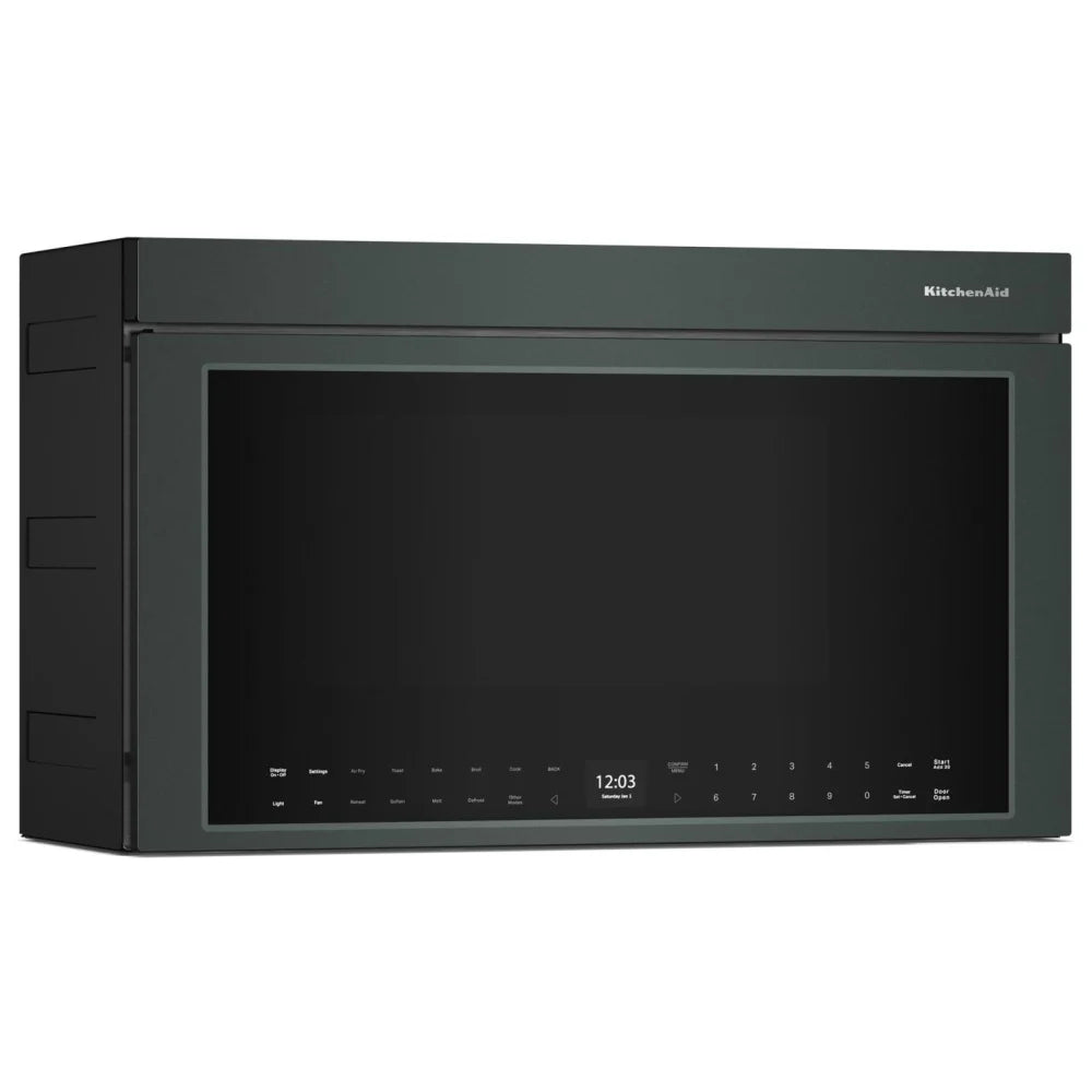 The KitchenAid® YKMMF530PJP multifunction over-the-range microwave is designed for home cooks who want the power of several appliances in one sleek, space-saving unit. With a generous 1.1 cu. ft. capacity and a full 30" width, it comfortably accommodates a 9" x 13" casserole dish, mixing bowls, and multiple plates at once, making it ideal for both everyday meals and entertaining. This model stands out by combining microwave, air fryer, convection oven, toaster oven, and ventilation hood capabilities in a single appliance, freeing up valuable countertop space while giving your kitchen a clean, built-in look that integrates seamlessly with surrounding cabinetry.