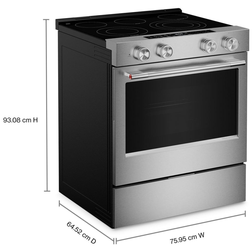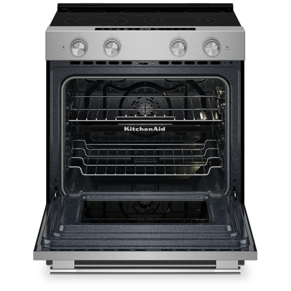 KitchenAid YKSES530SPS Electric Range, 5.3 cu. ft. Capacity, 30 inch Exterior Width, True Convection, 5 Burners, Storage Drawer, Air Fry, Self Clean