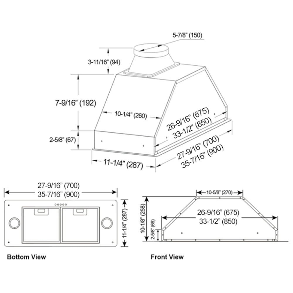 The dimensions of the Kobe INX2736SQB-700-3 Cabinet Insert are 36 inch Exterior Width.