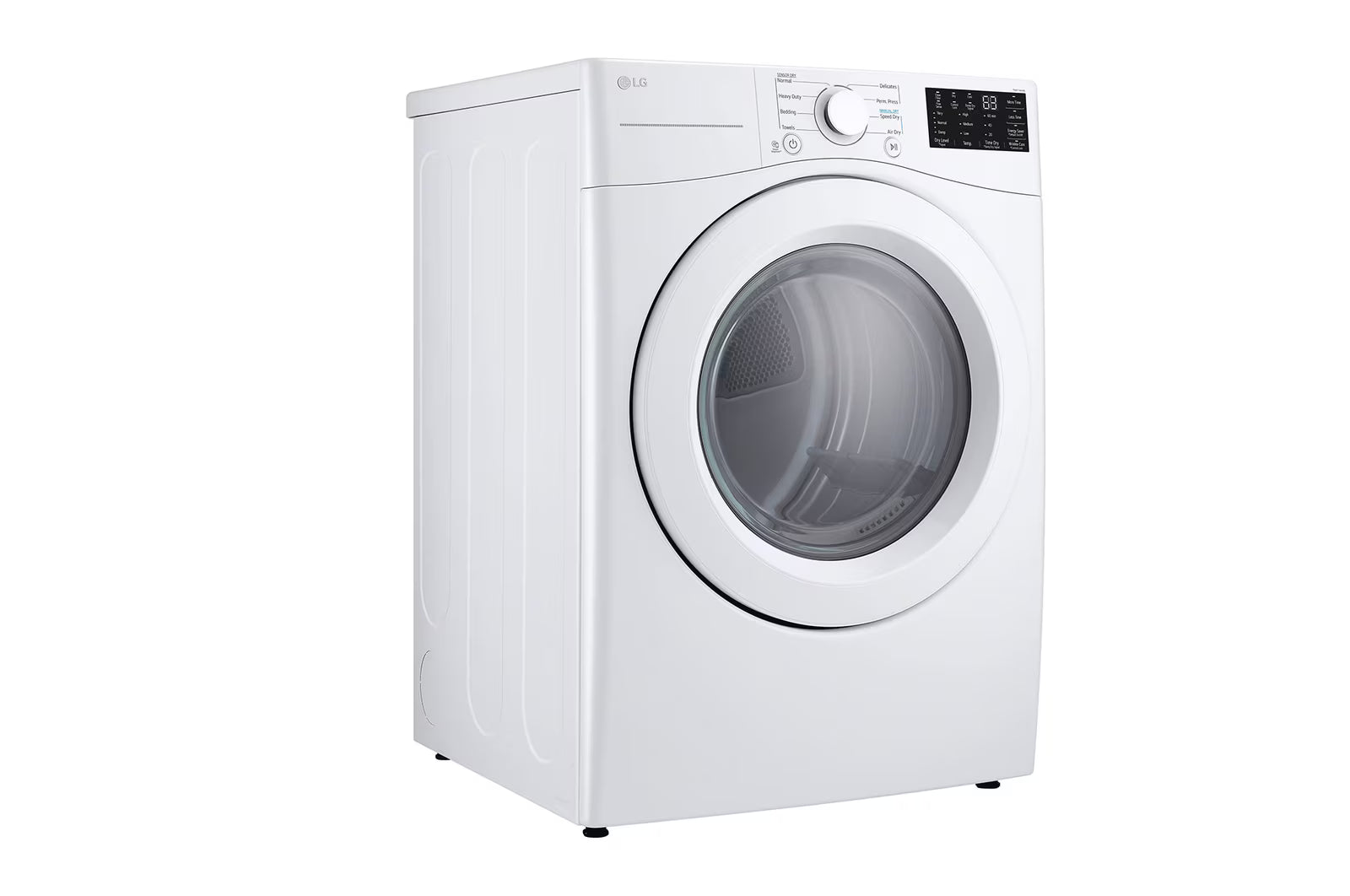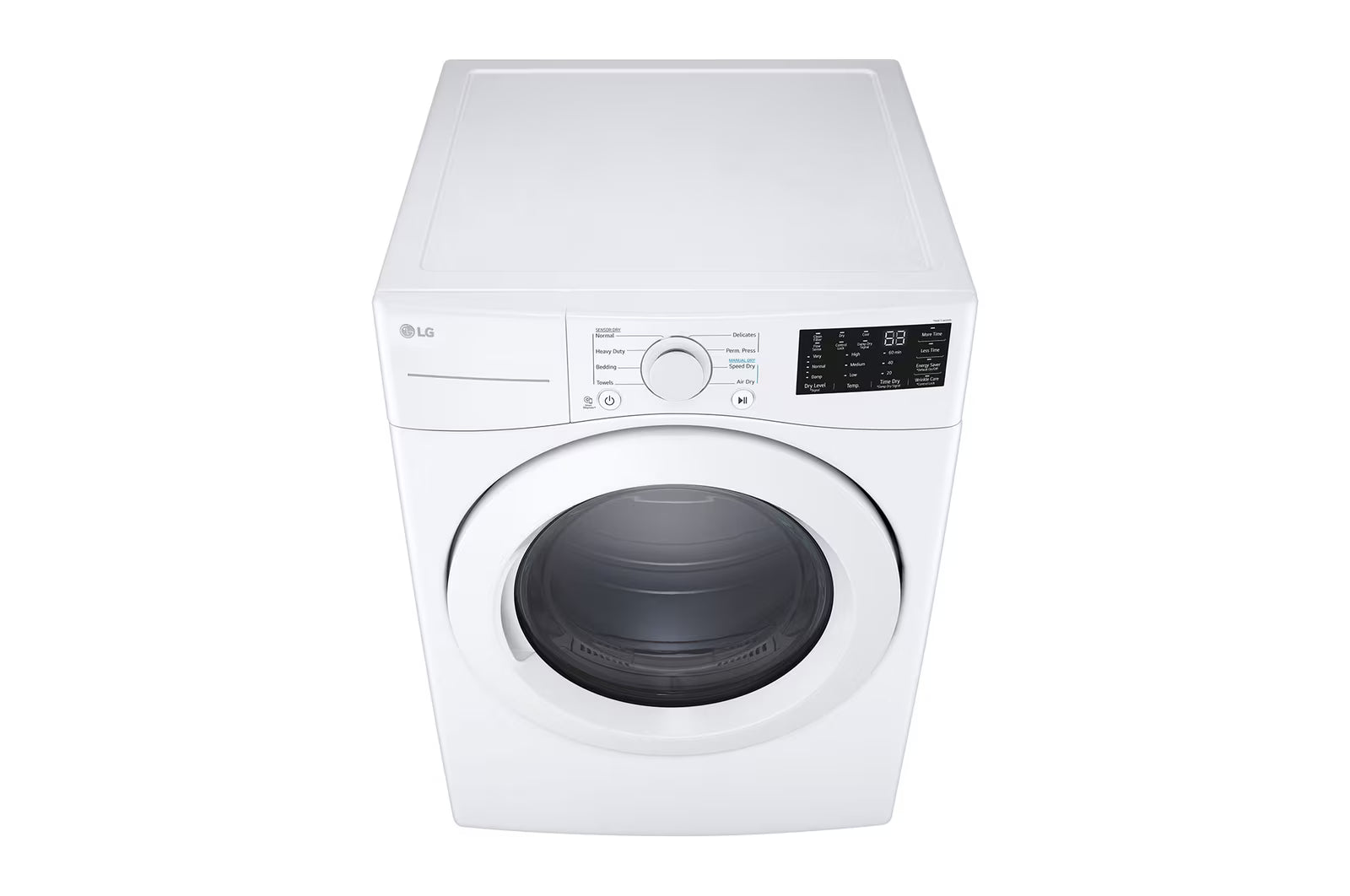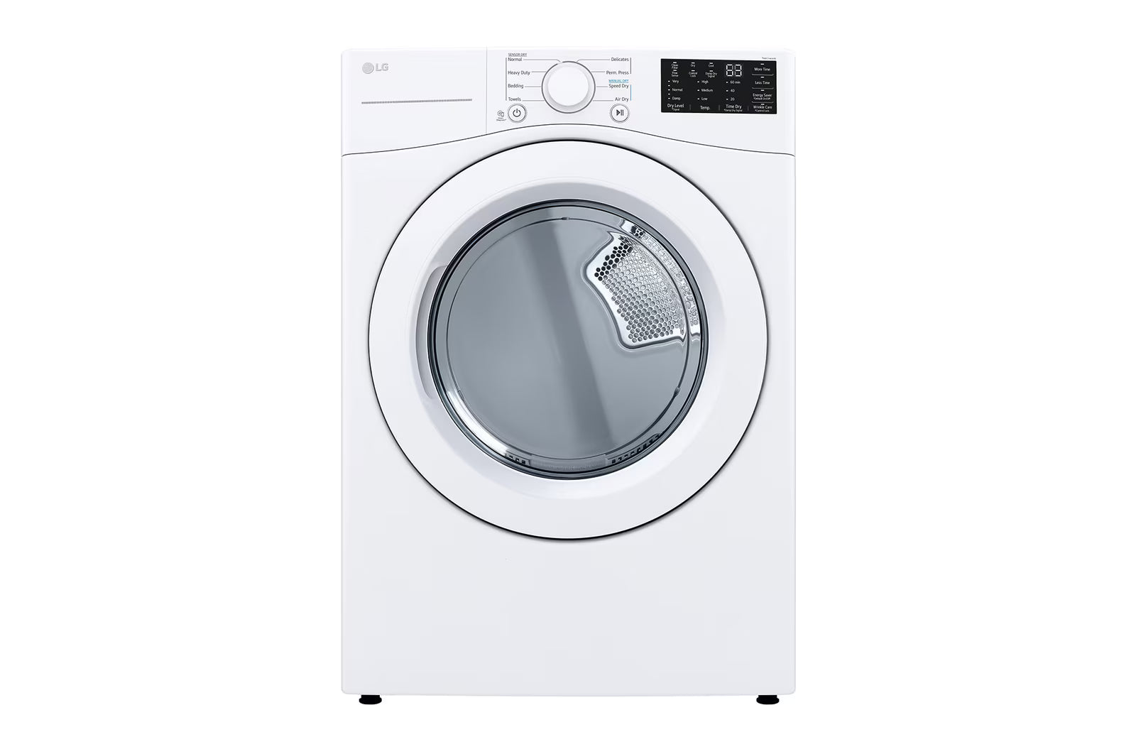 The LG DLE3470W is a high-capacity, ENERGY STAR® certified electric dryer built for large loads and efficiency. Its 7.4 cu. ft. drum can easily handle items like a king-size comforter, while Sensor Dry technology monitors moisture and adjusts time for perfectly dried laundry. The Wrinkle Care option intermittently tumbles clothes to keep them smooth if you forget to unload, and the FlowSense® duct-clogging indicator alerts you when it’s time to clean the vents for optimal drying performance and lower utility costs.