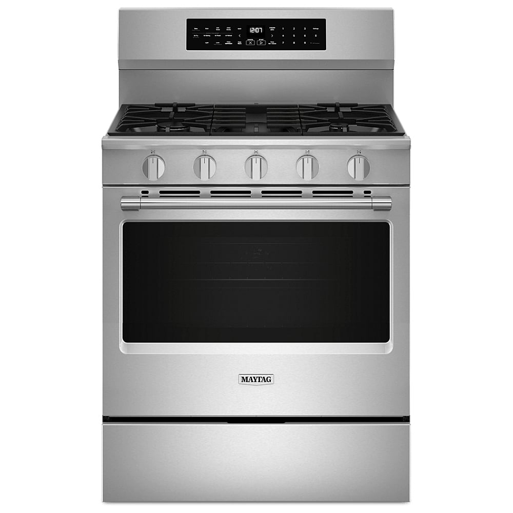 The Maytag MFGS8030RZ Gas Range features self-clean, convection, 5 burners, and 5 cu. ft. capacity.