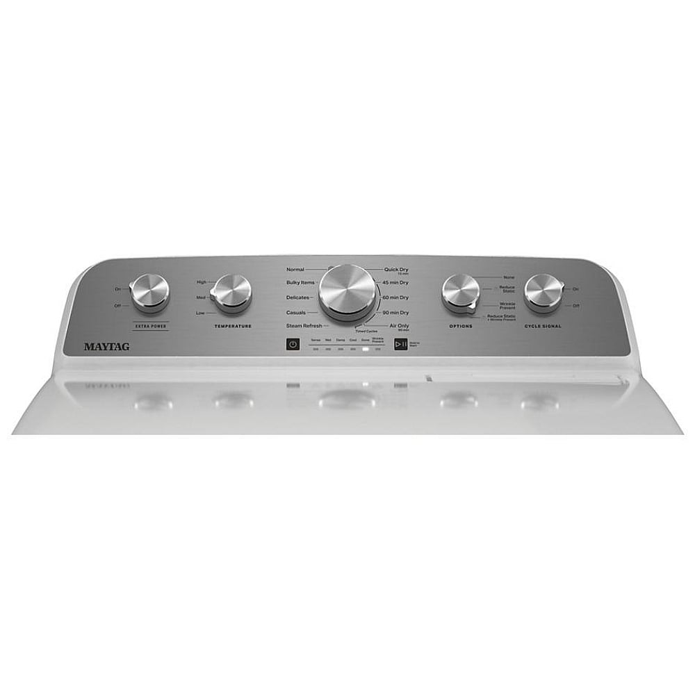 The Maytag MGD5430MW Gas Dryer measures 29 inches in width, 35 inches in height, and 30 inches in depth.