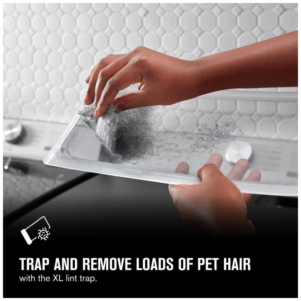 The Pet Pro option uses a no-heat, extended dry time to lift pet hair from clothes and capture it in the XL lint trap.