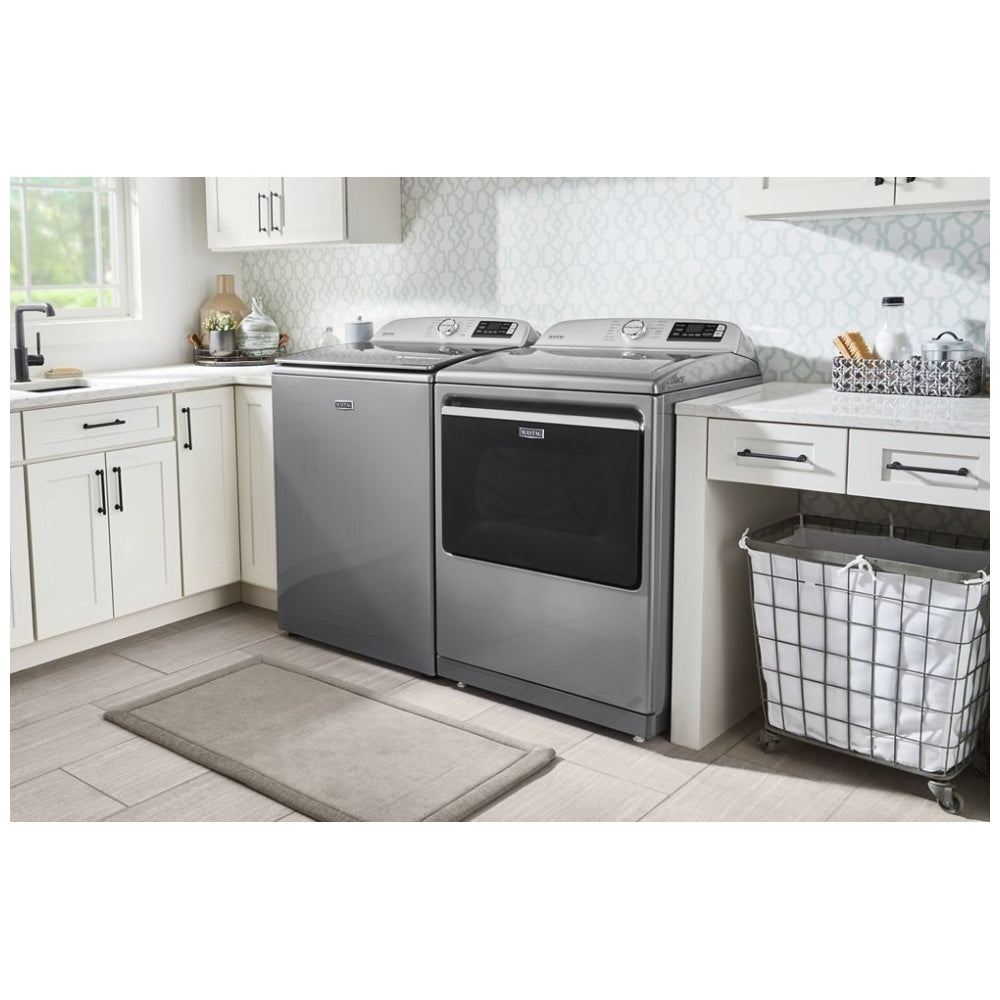 The Maytag MGD7230HC Gas Dryer features advanced moisture sensing, steam-enhanced drying, quick dry cycle, and wrinkle prevent option with steam.