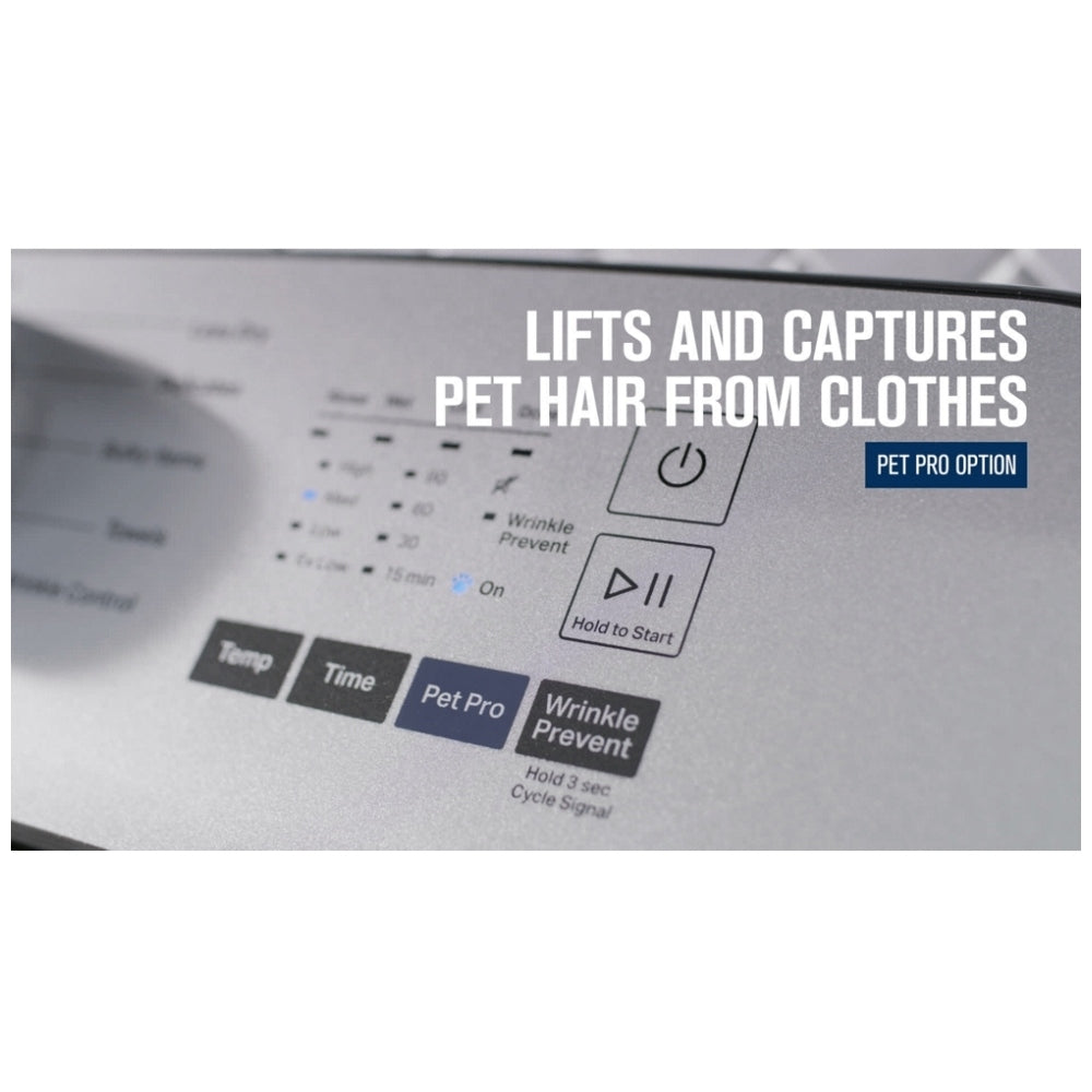 The Pet Pro option uses a no-heat, extended dry time to lift pet hair from clothes and capture it in the XL lint trap.