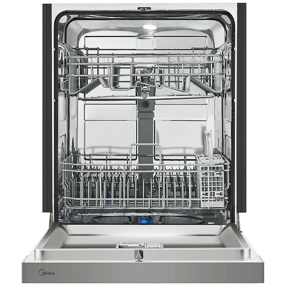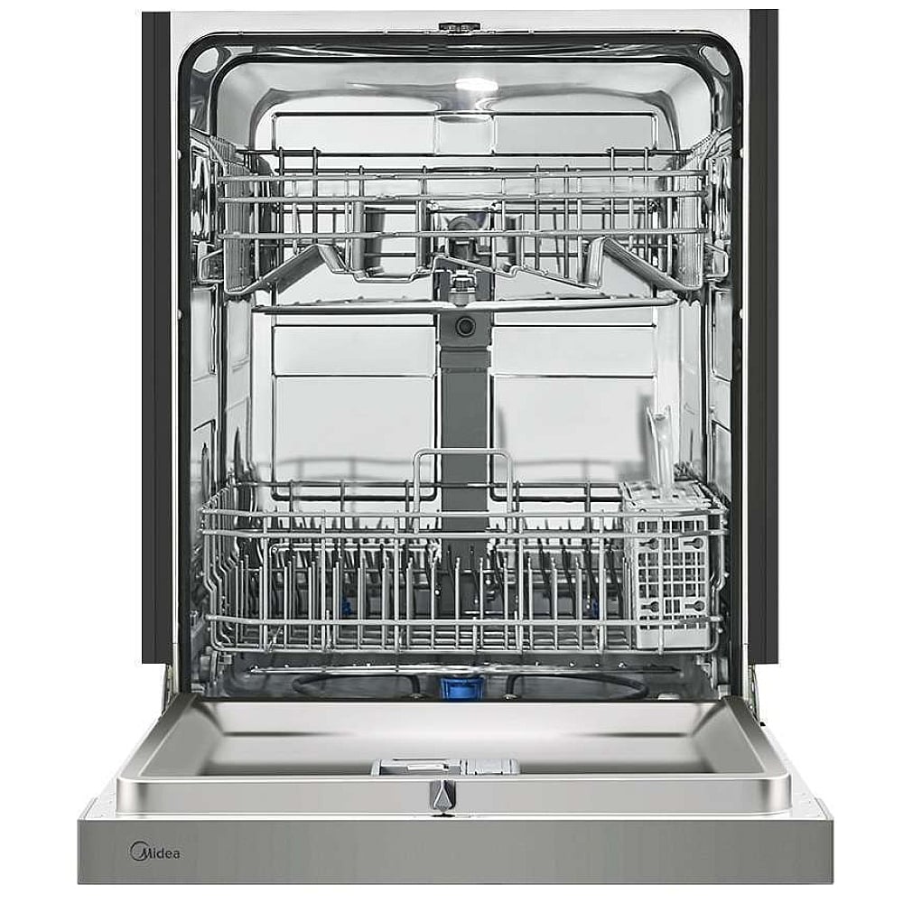 The Midea Front Control Dishwasher boasts advanced cleaning technology that guarantees spotless dishes, enhanced by an Extended Dry feature for extra dryness. Equipped with a 7-segment digital display on the control panel, it offers intuitive operation. The hybrid stainless steel tub, complemented by bright interior lighting, not only looks sleek and durable but also simplifies loading. With its flexible loading options and NSF-certified Sanitize Cycle, this dishwasher ensures effortless and worry-free cleaning.