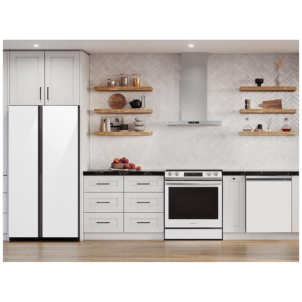 - What are the available colors for the Samsung Bespoke NK36CB700WCGAA Range Hood?
