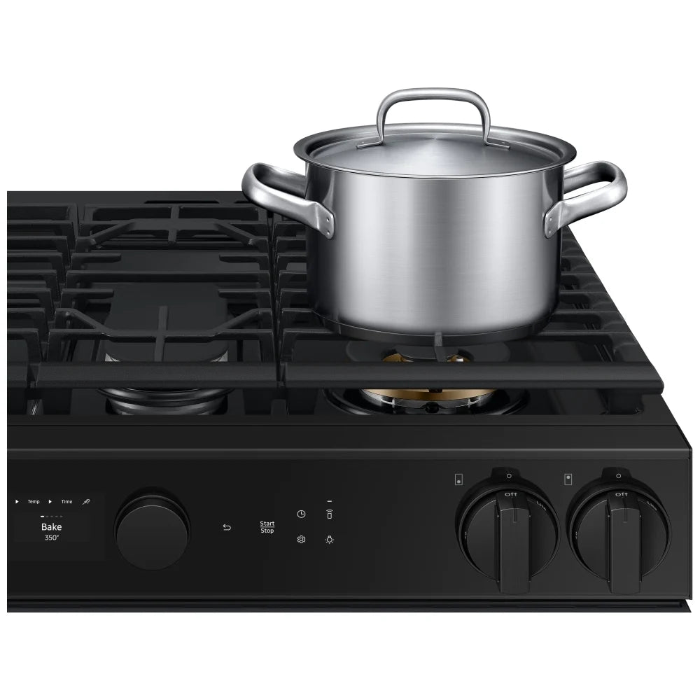 Samsung Bespoke NSG6DG8500MTAA Gas Range, 6 cu. ft. Capacity, 30 inch Exterior Width, Self Clean, True Convection, 5 Burners, Storage Drawer, & , 18,000 BTU Highest Burner, Black Matte Steel colour Aluminum Griddle,