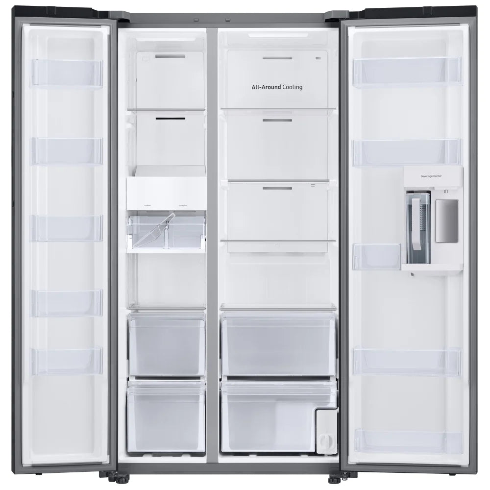 With a 28 cu. ft. Interior and SpaceMax™ technology, you get extra storage space inside without compromising energy efficiency. Plus, the silver-accented adjustable slide-in shelving add a touch elegance to your fridge interior.