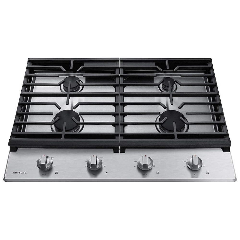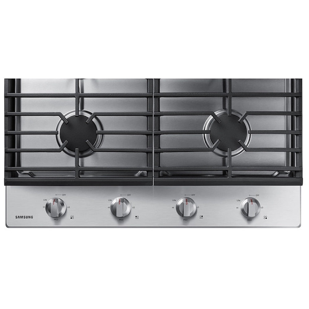 Blue illuminated knobs let you know when the cooktop is on or off.