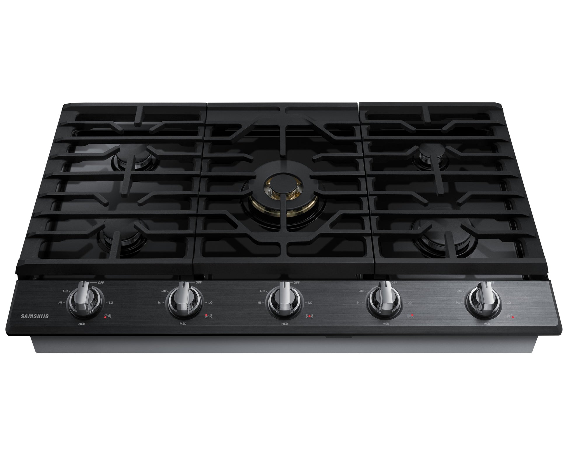 Blue illuminated knobs let you know when the cooktop is on or off.