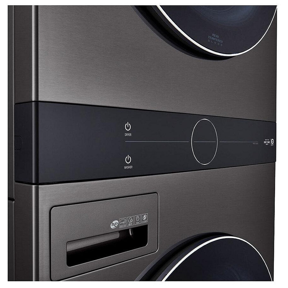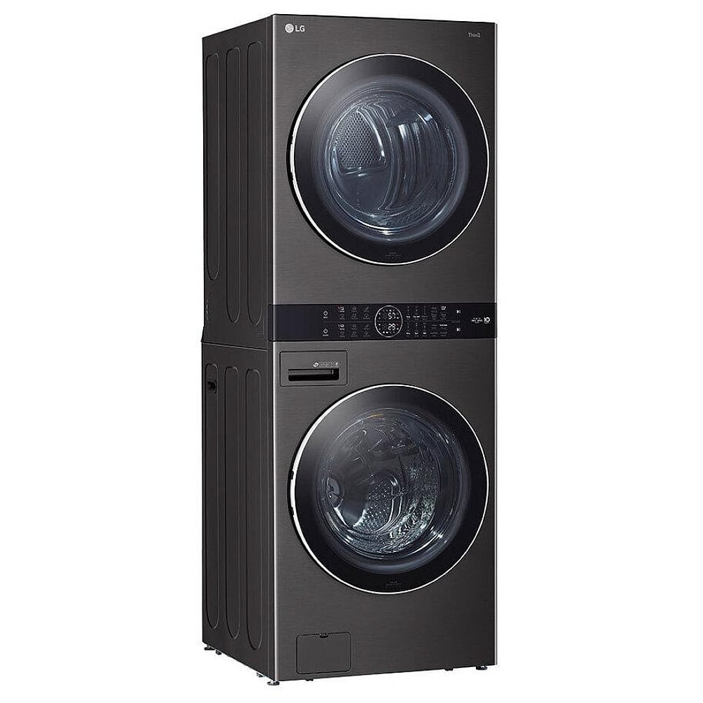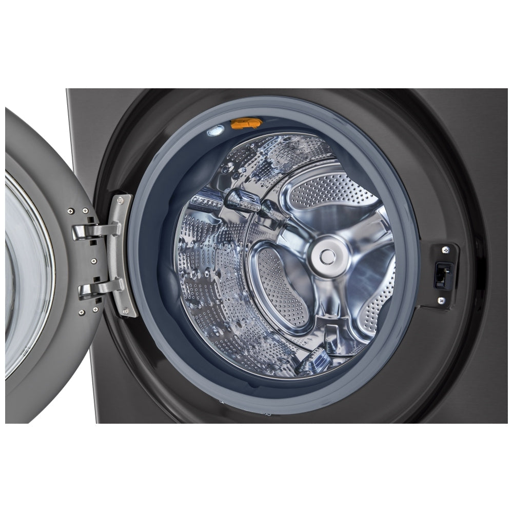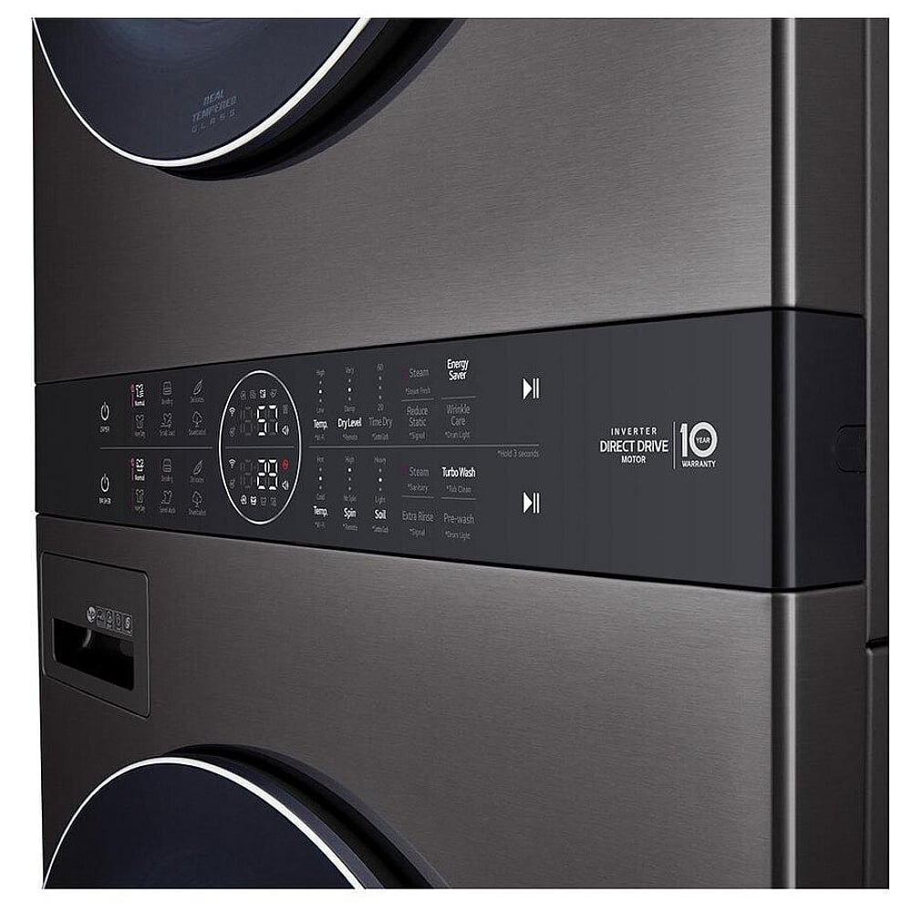 The LG WKGX201HBA washer and dryer set features advanced smart features, including ThinQ app, AI DD, and TurboWash 360, which provide efficient and effective cleaning and drying.