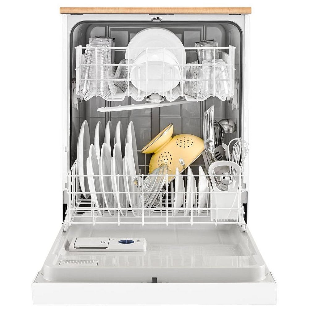 The Whirlpool WDP370PAHW Dishwasher is designed to provide a thorough clean with its 1-Hour Wash cycle and soil sensor technology.
