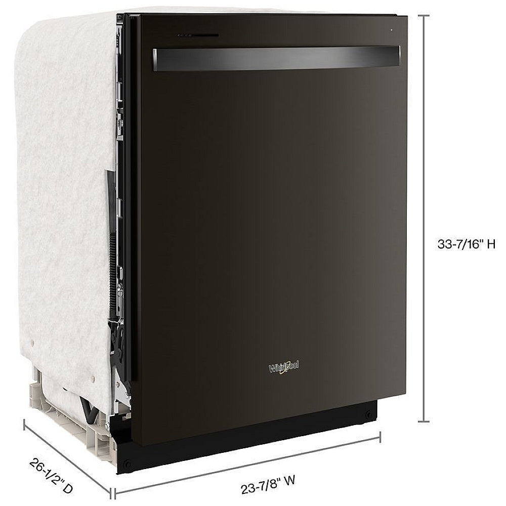 The Whirlpool WDT750SAKV Dishwasher measures 24 inches in exterior width and 35.5 inches in height.