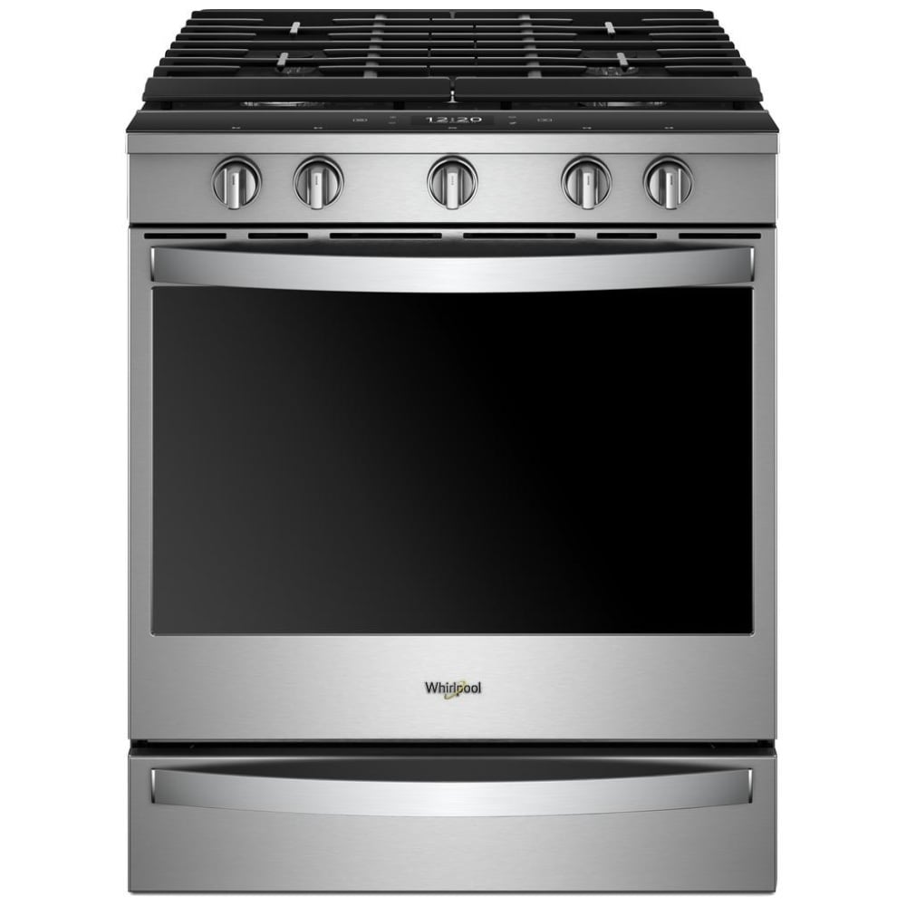 - What are the smart features of the Whirlpool WEG750H0HZ Gas Range?