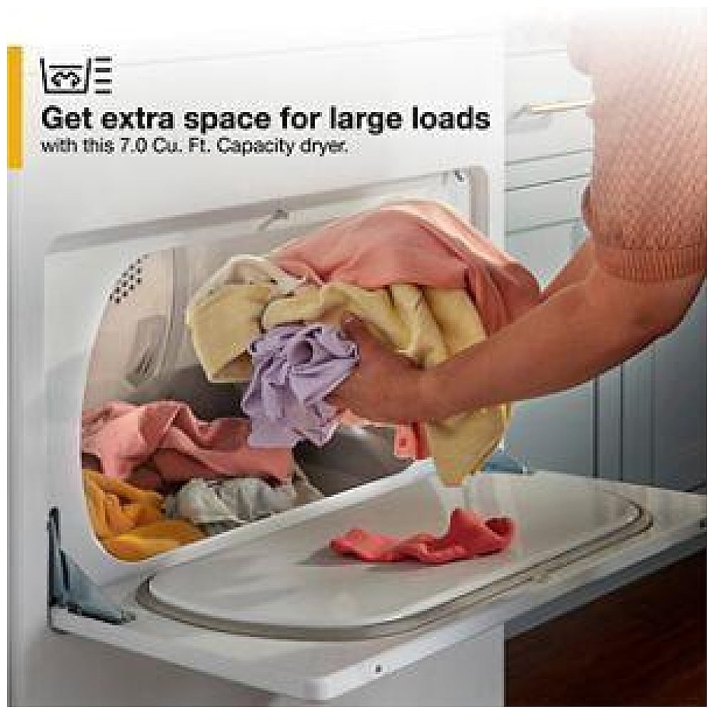 The Whirlpool WGD5010LW Gas Dryer measures 29 inches in width, 35 inches in height, and 27 inches in depth.